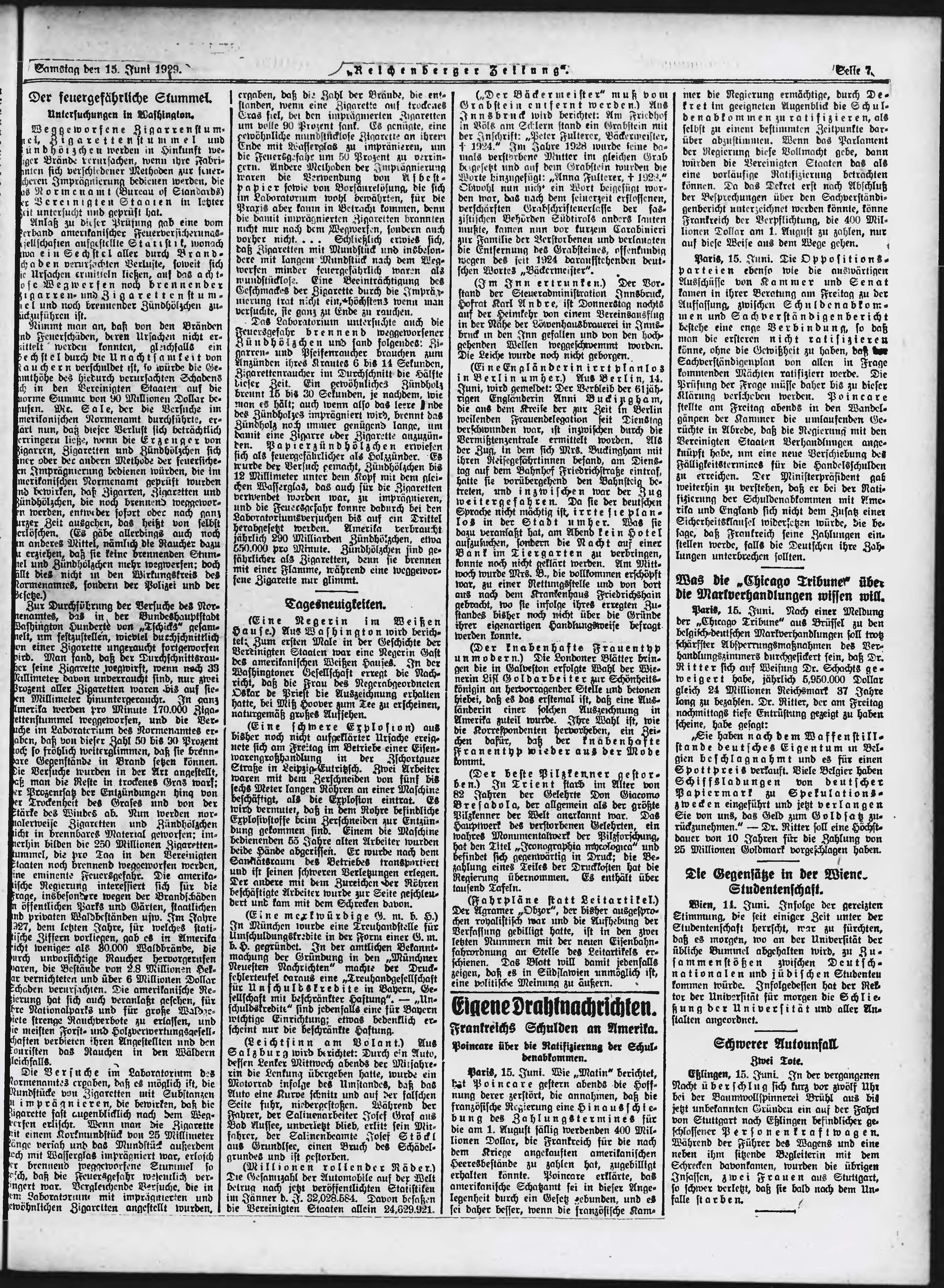* Datum vydání výtisku: 15.6.1929 Číslo výtisku: 141 Typ výtisku: příloha Poznámky k výtisku: večerní vydání;