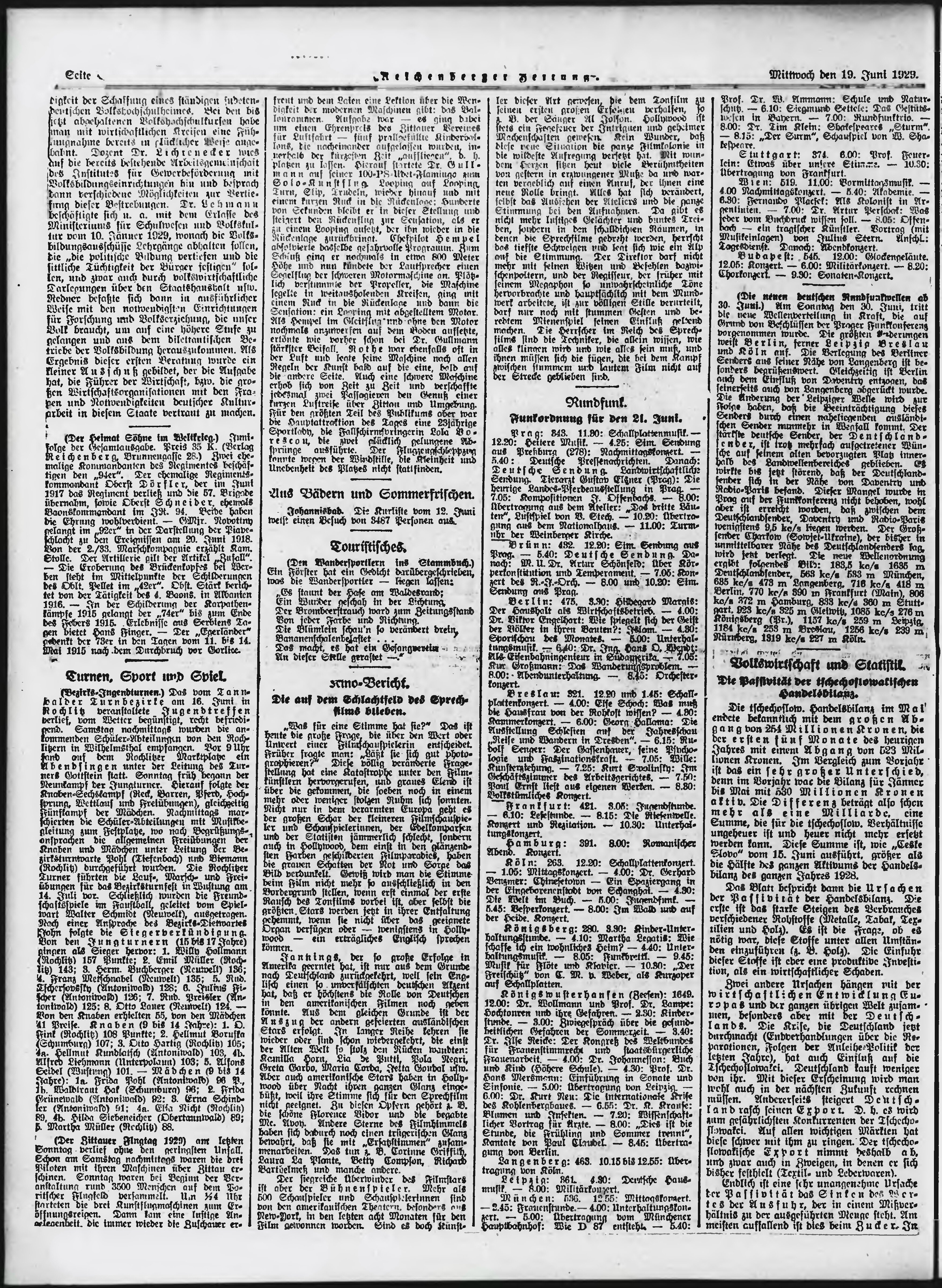 * Datum vydání výtisku: 19.6.1929 Číslo výtisku: 144 Poznámky k výtisku: ranní vydání;