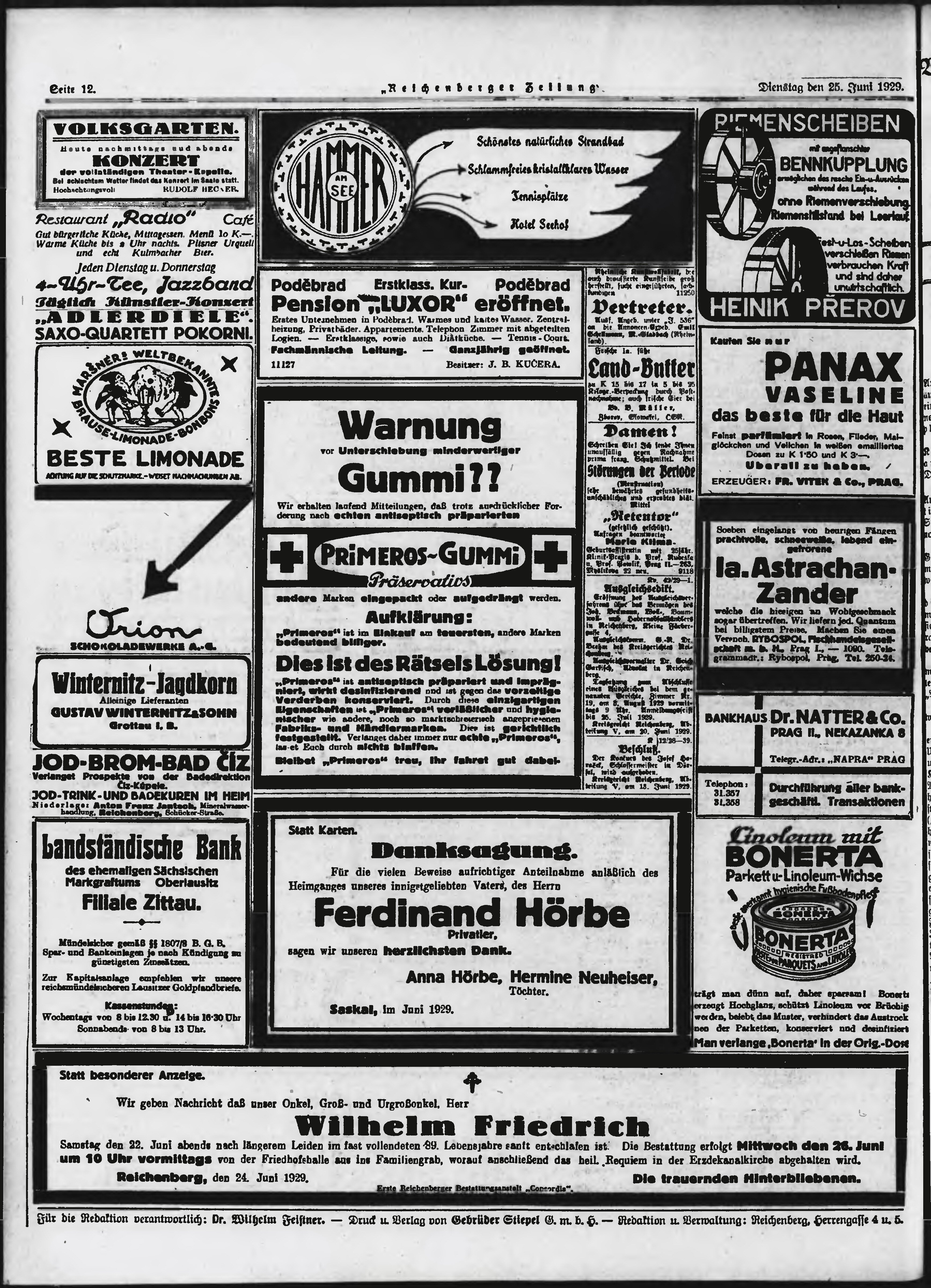 * Datum vydání výtisku: 25.6.1929 Číslo výtisku: 149 Poznámky k výtisku: ranní vydání;