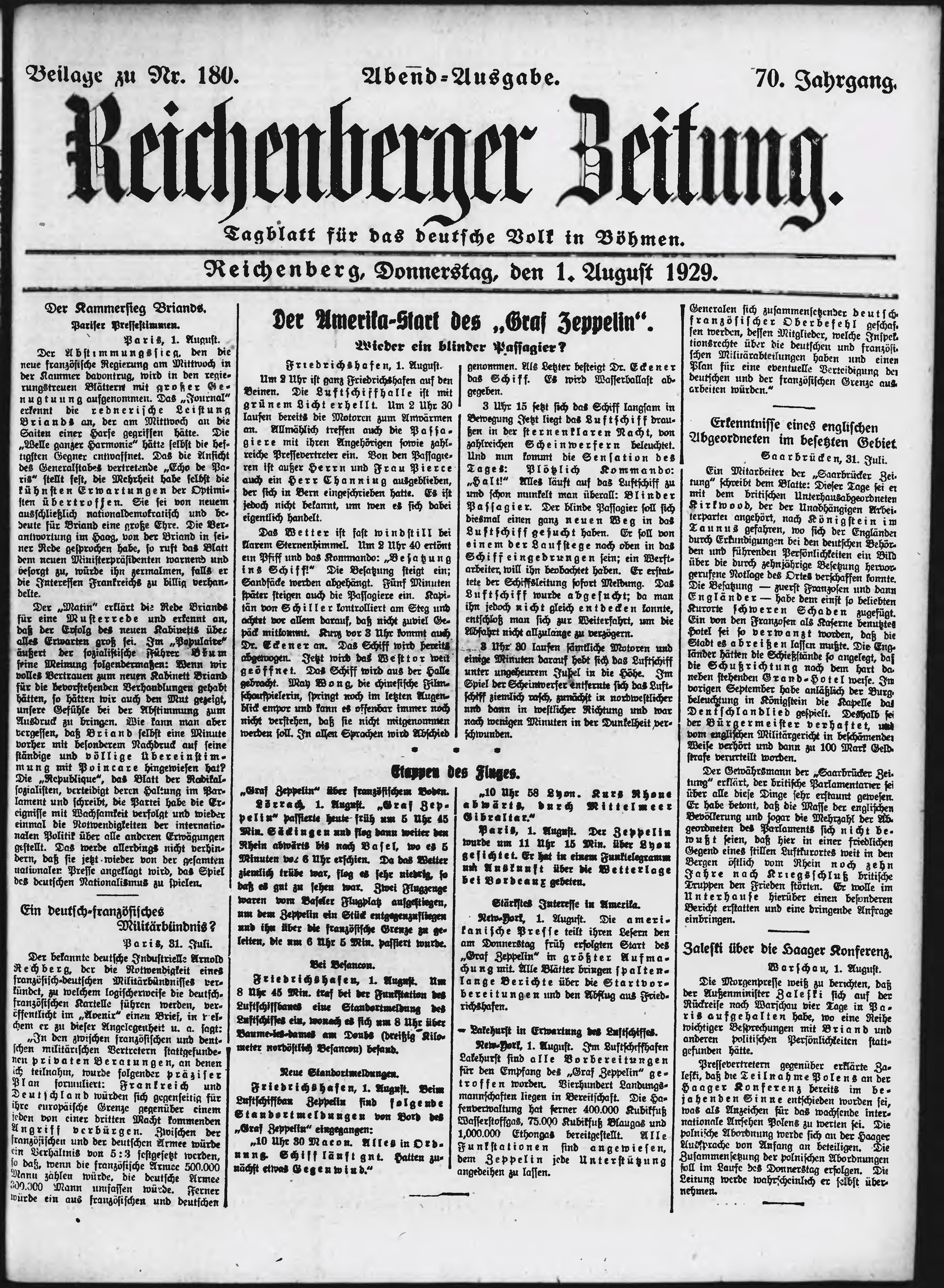 * Datum vydání výtisku: 1.8.1929 Číslo výtisku: 180 Typ výtisku: příloha Poznámky k výtisku: večerní vydání;