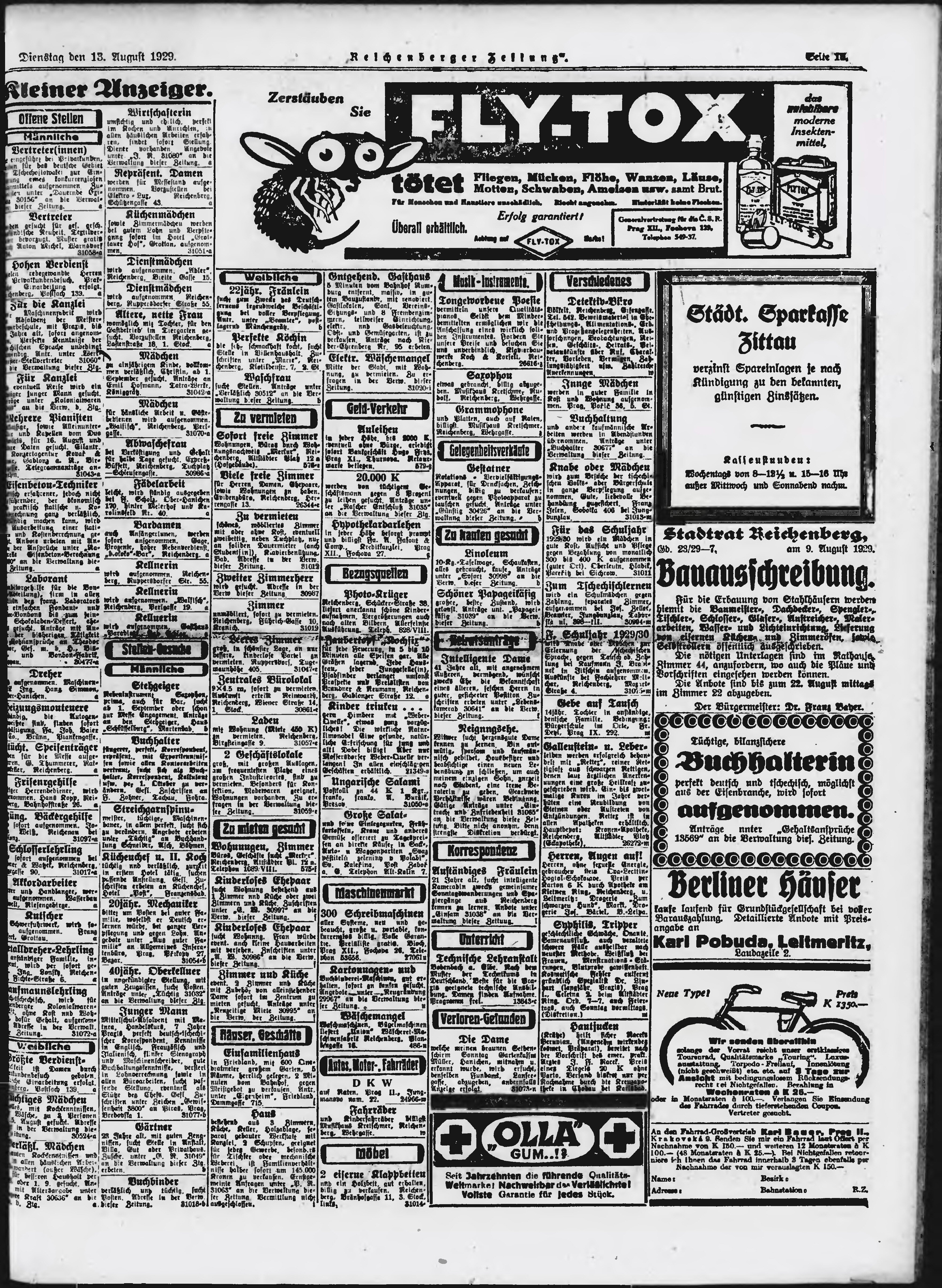 * Datum vydání výtisku: 13.8.1929 Číslo výtisku: 189 Poznámky k výtisku: ranní vydání;