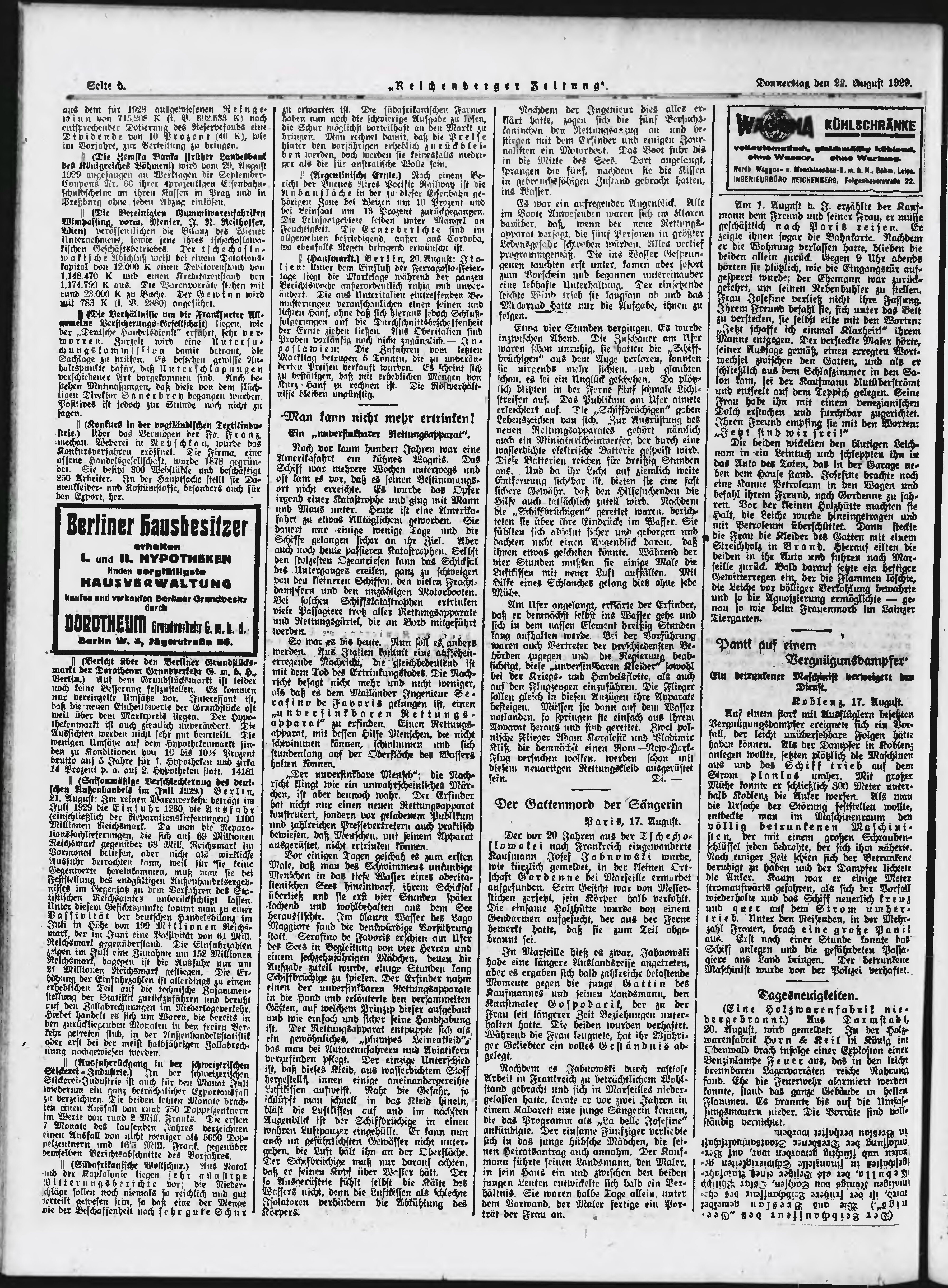 * Datum vydání výtisku: 22.8.1929 Číslo výtisku: 197 Poznámky k výtisku: ranní vydání;