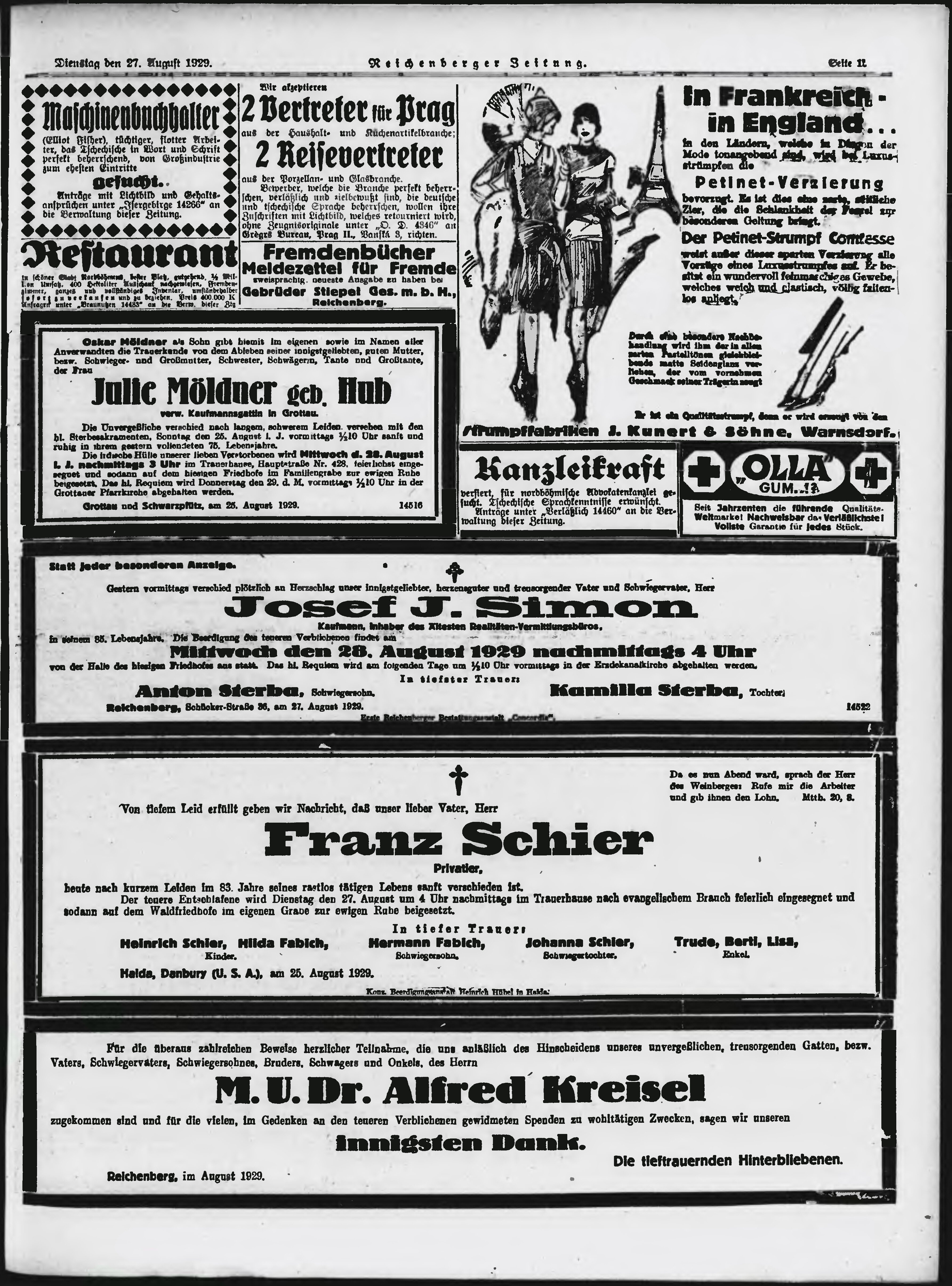 * Datum vydání výtisku: 27.8.1929 Číslo výtisku: 201 Poznámky k výtisku: ranní vydání;