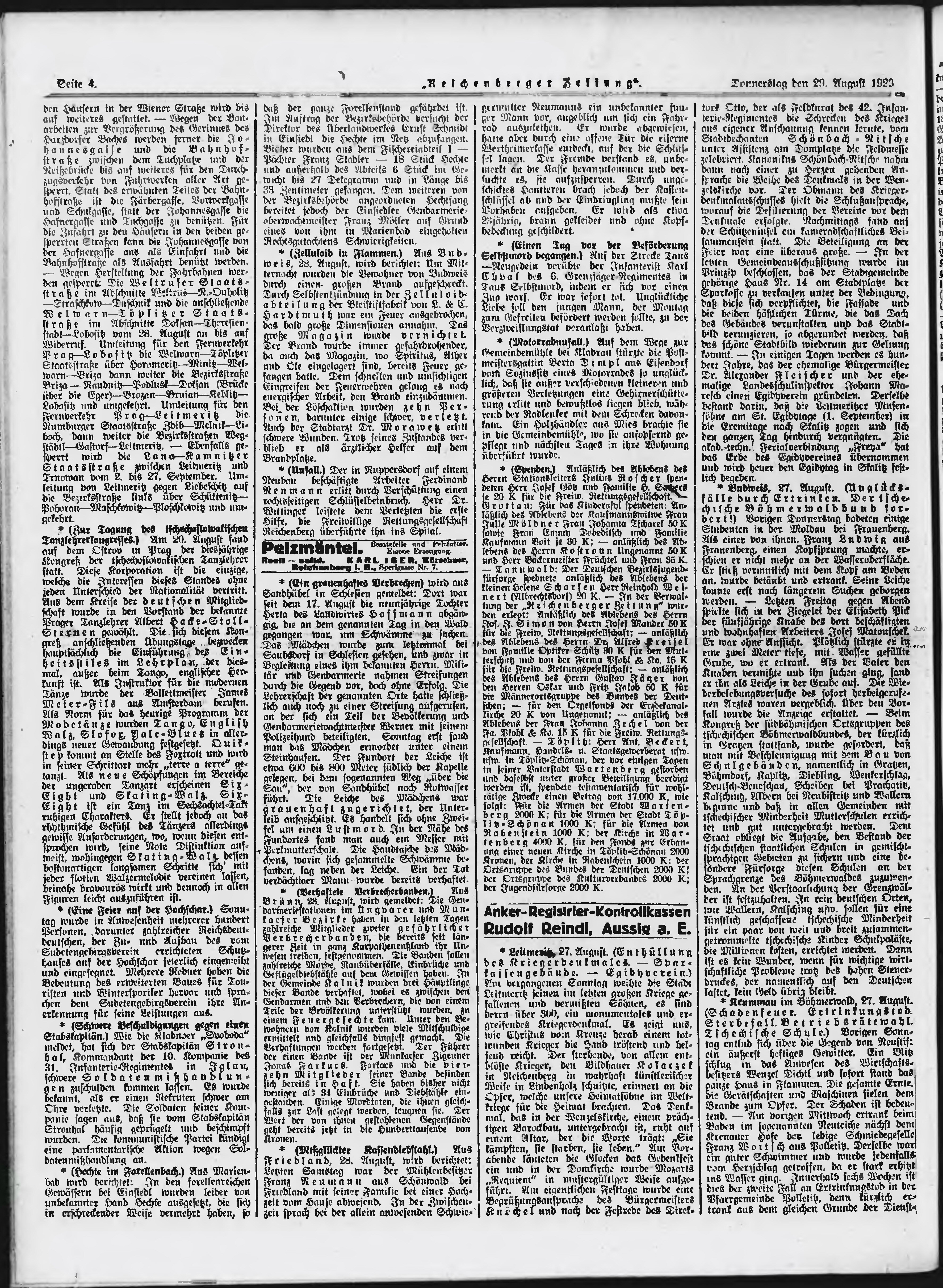 * Datum vydání výtisku: 29.8.1929 Číslo výtisku: 203 Poznámky k výtisku: ranní vydání;