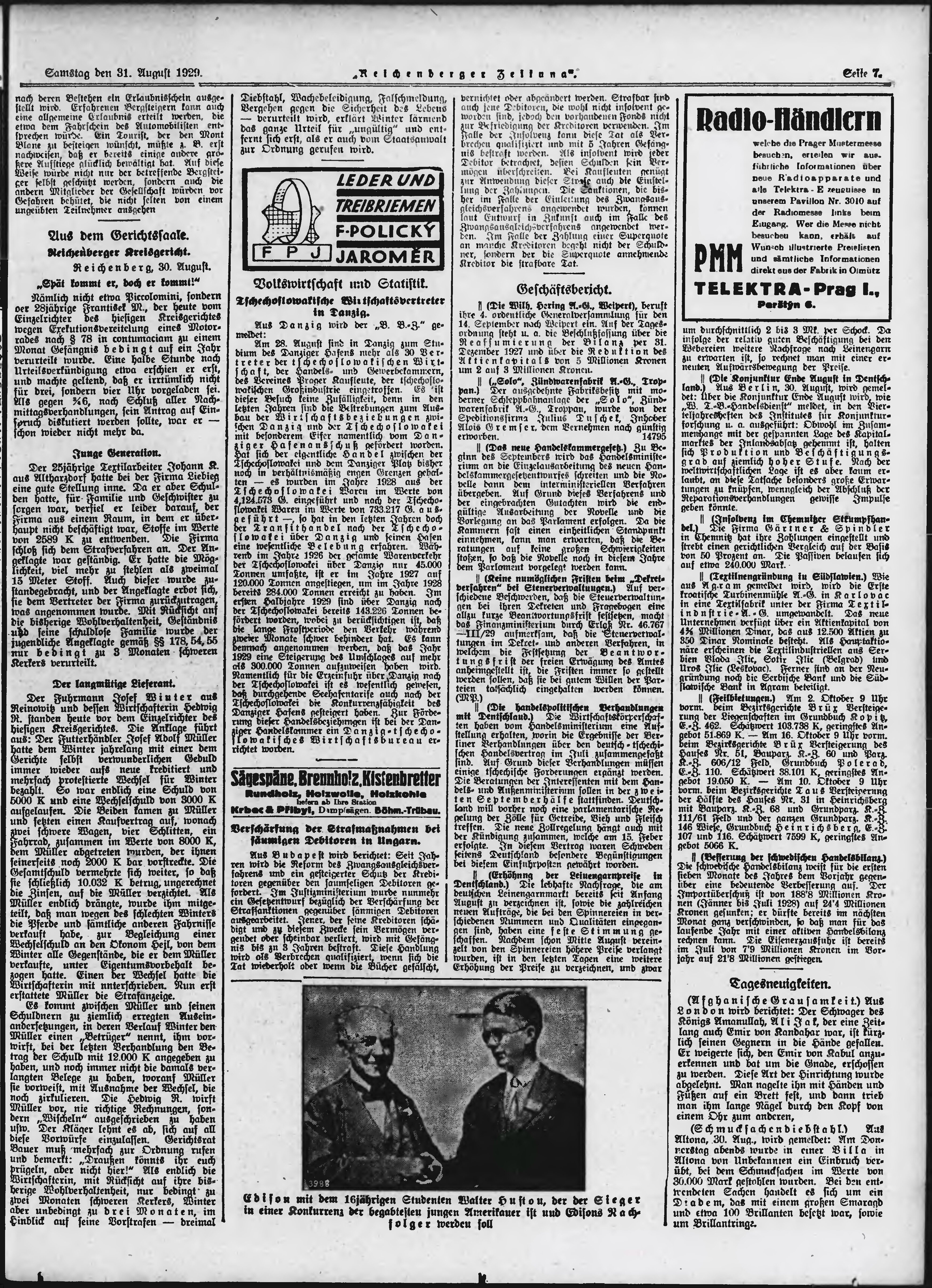 * Datum vydání výtisku: 31.8.1929 Číslo výtisku: 205 Poznámky k výtisku: ranní vydání;