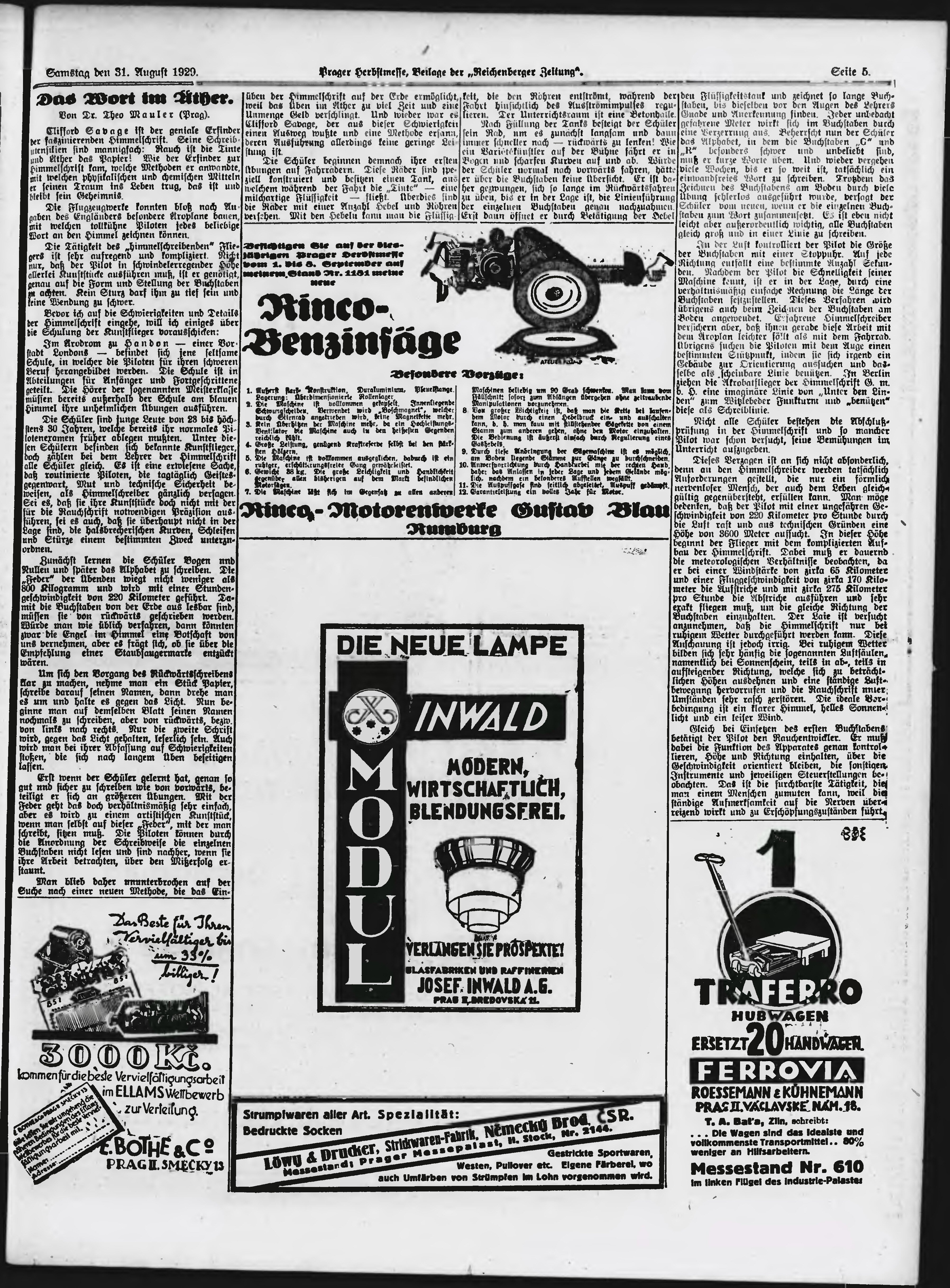 * Datum vydání výtisku: 31.8.1929 Číslo výtisku: 205 Typ výtisku: příloha