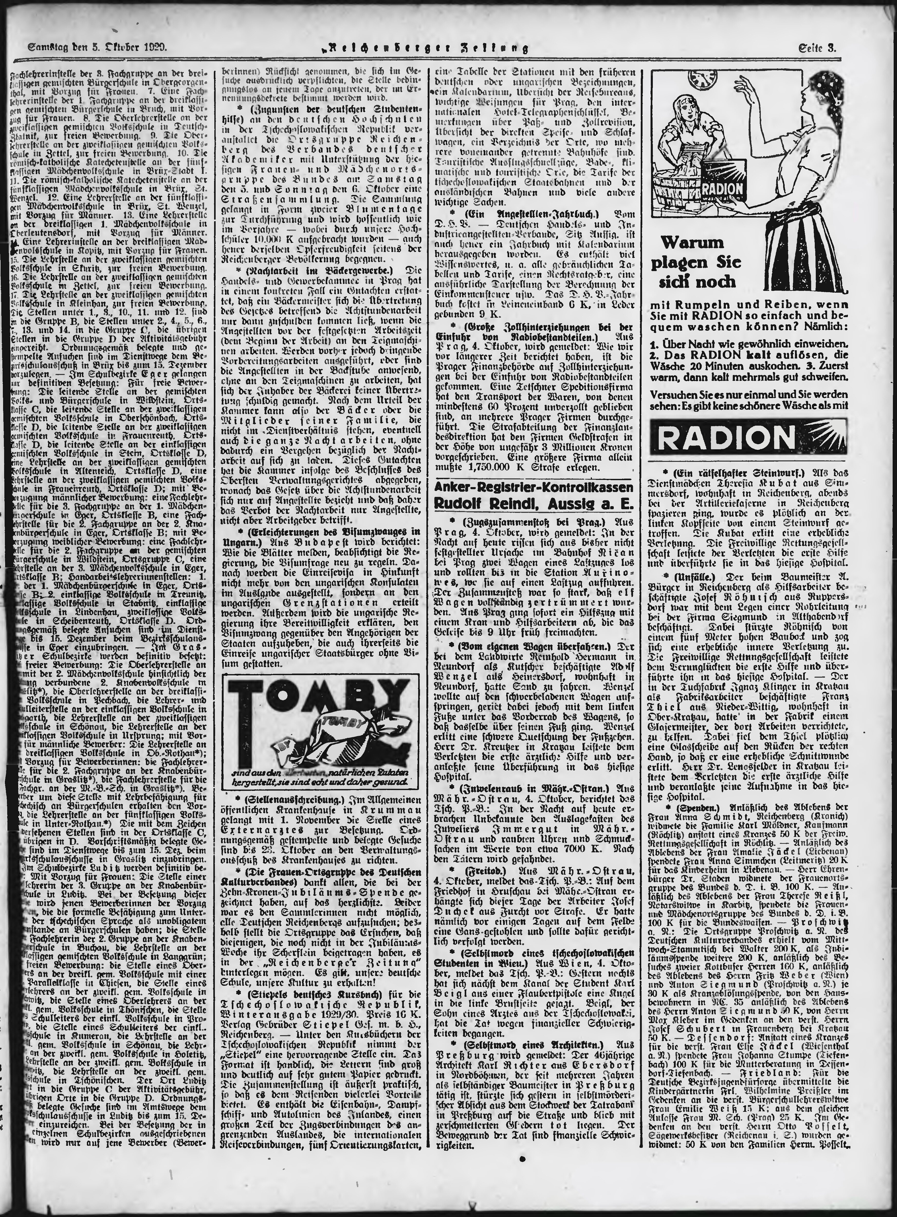 * Datum vydání výtisku: 5.10.1929 Číslo výtisku: 234 Poznámky k výtisku: ranní vydání;