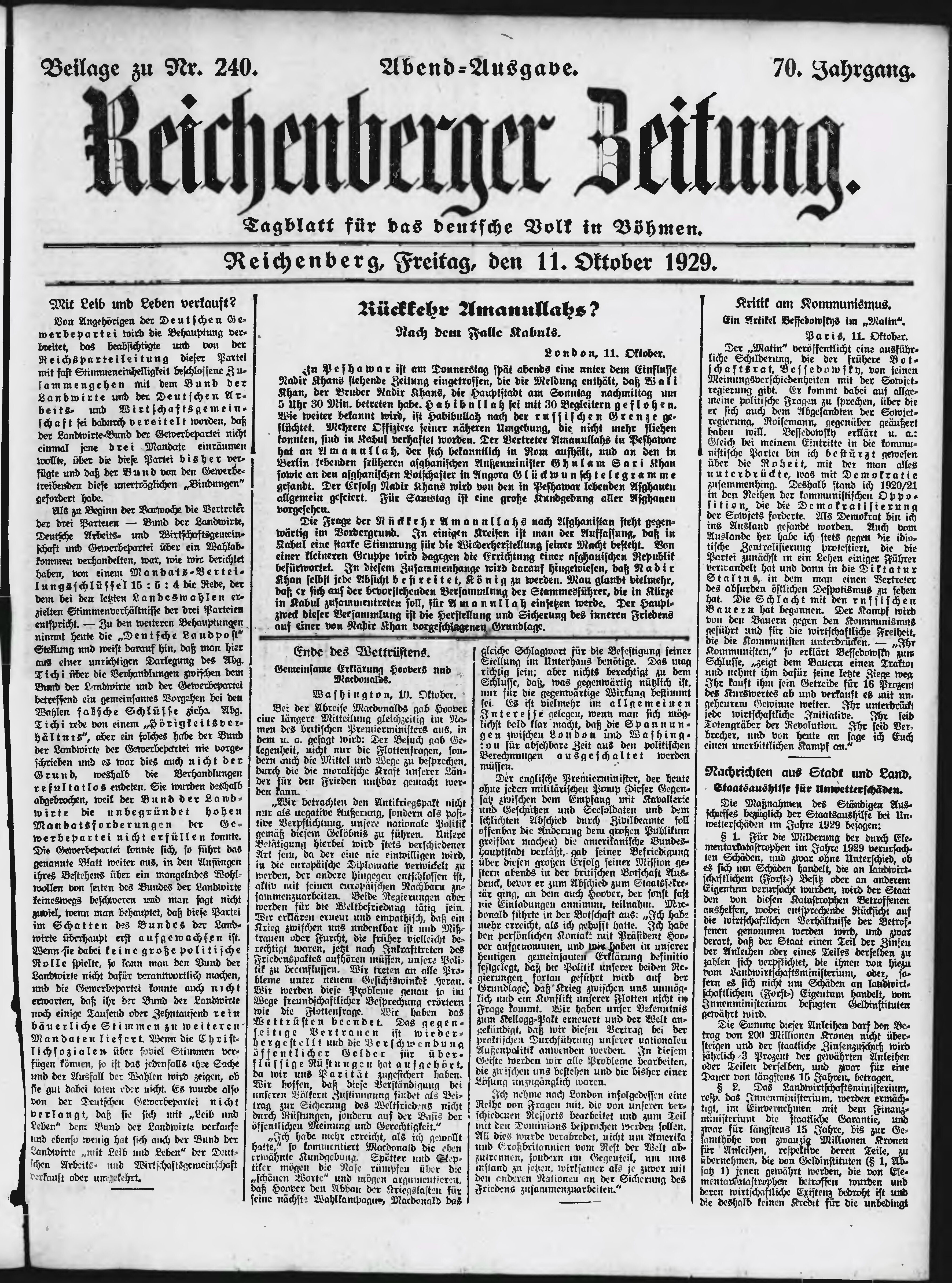 * Datum vydání výtisku: 11.10.1929 Číslo výtisku: 240 Typ výtisku: příloha Poznámky k výtisku: večerní vydání;