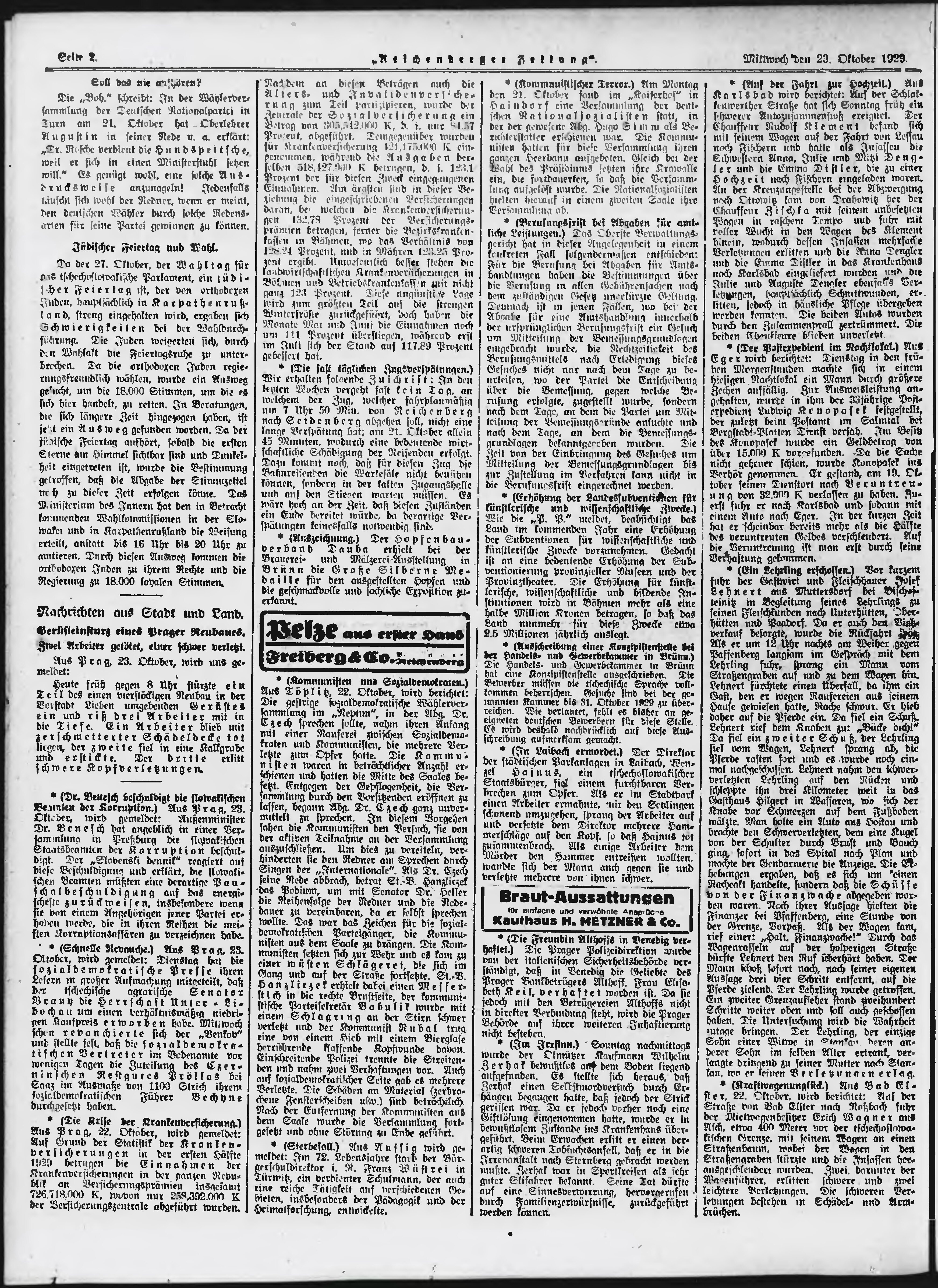 * Datum vydání výtisku: 23.10.1929 Číslo výtisku: 250 Typ výtisku: příloha Poznámky k výtisku: večerní vydání;
