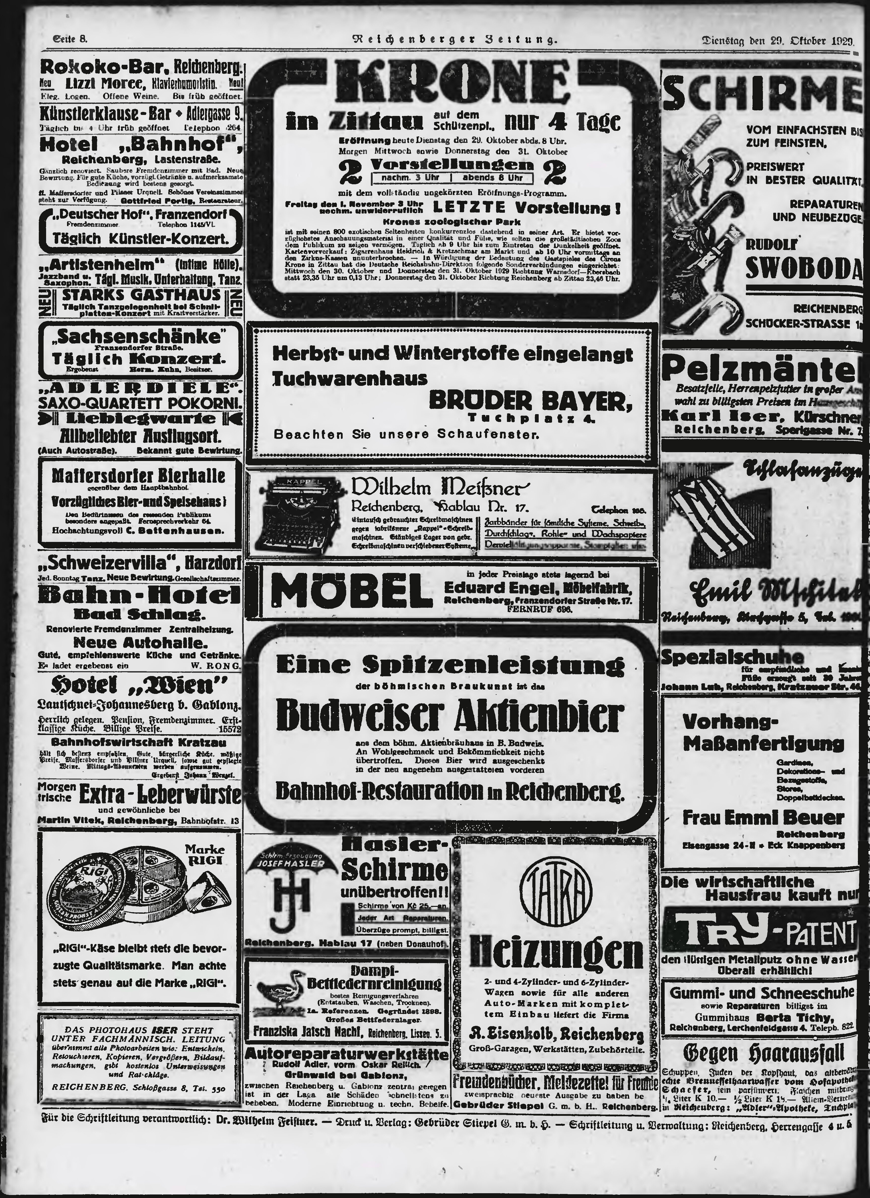 * Datum vydání výtisku: 29.10.1929 Číslo výtisku: 255 Typ výtisku: příloha Poznámky k výtisku: večerní vydání;