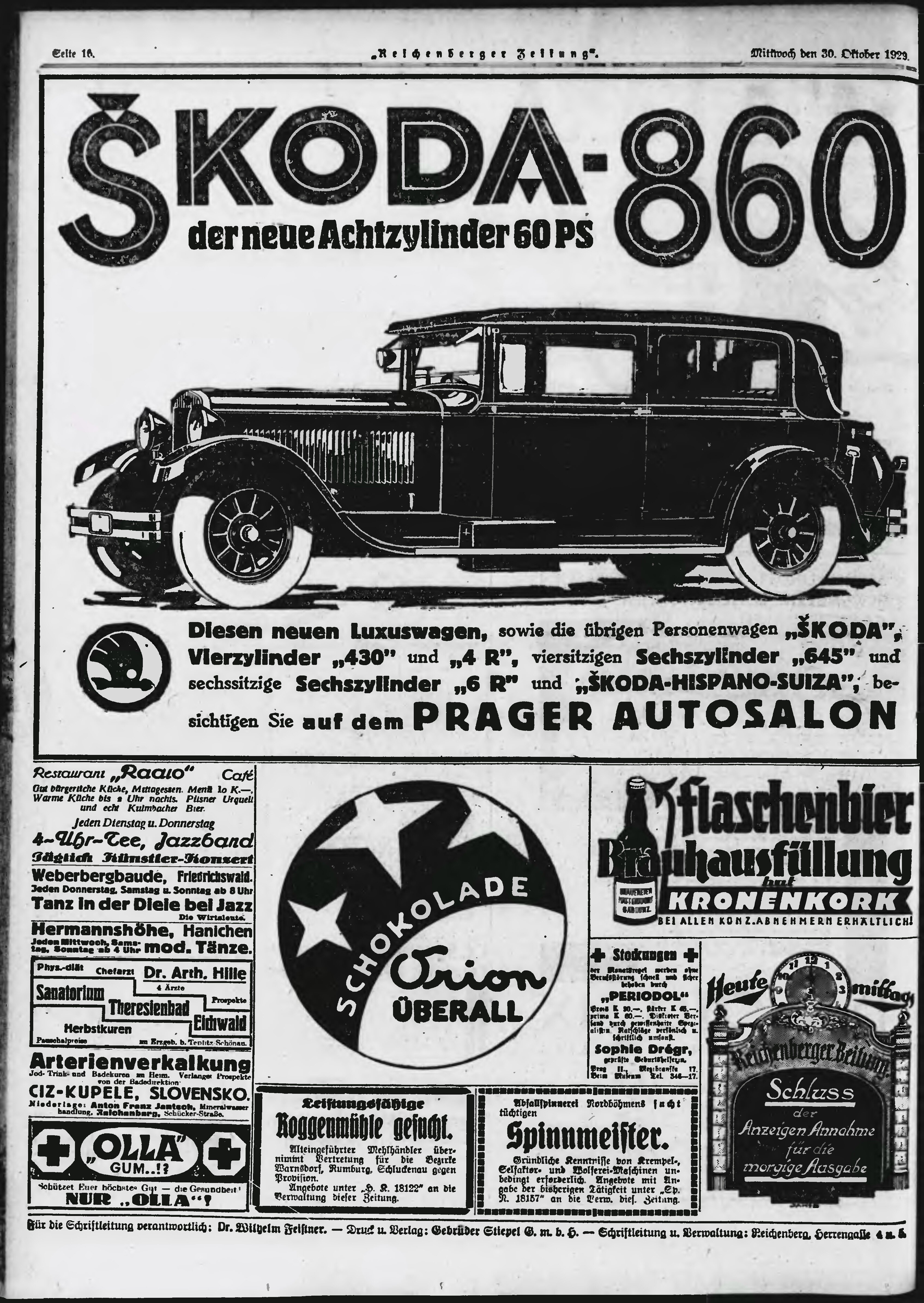* Datum vydání výtisku: 30.10.1929 Číslo výtisku: 255 Poznámky k výtisku: ranní vydání;