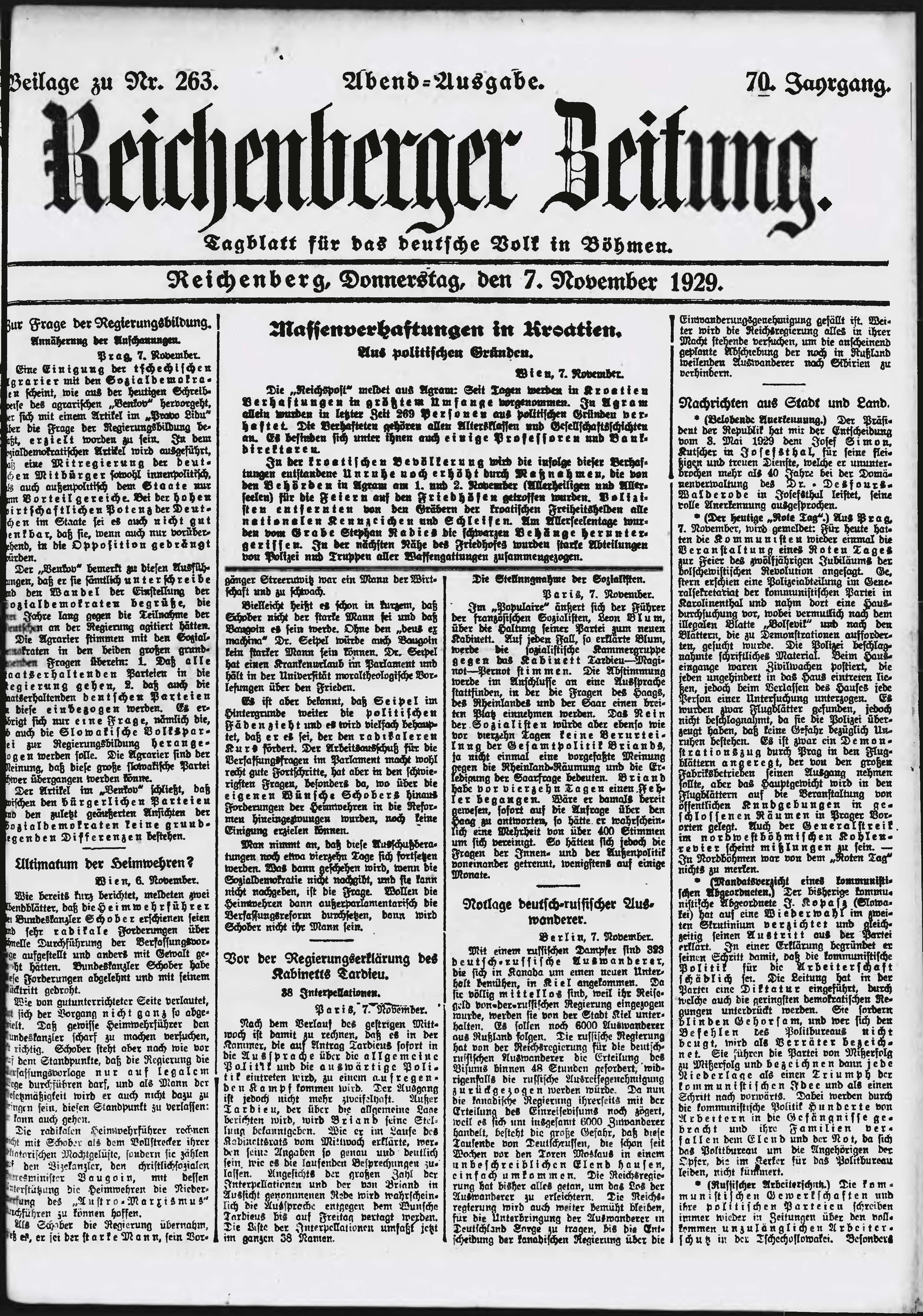 * Datum vydání výtisku: 7.11.1929 Číslo výtisku: 263 Typ výtisku: příloha Poznámky k výtisku: večerní vydání;