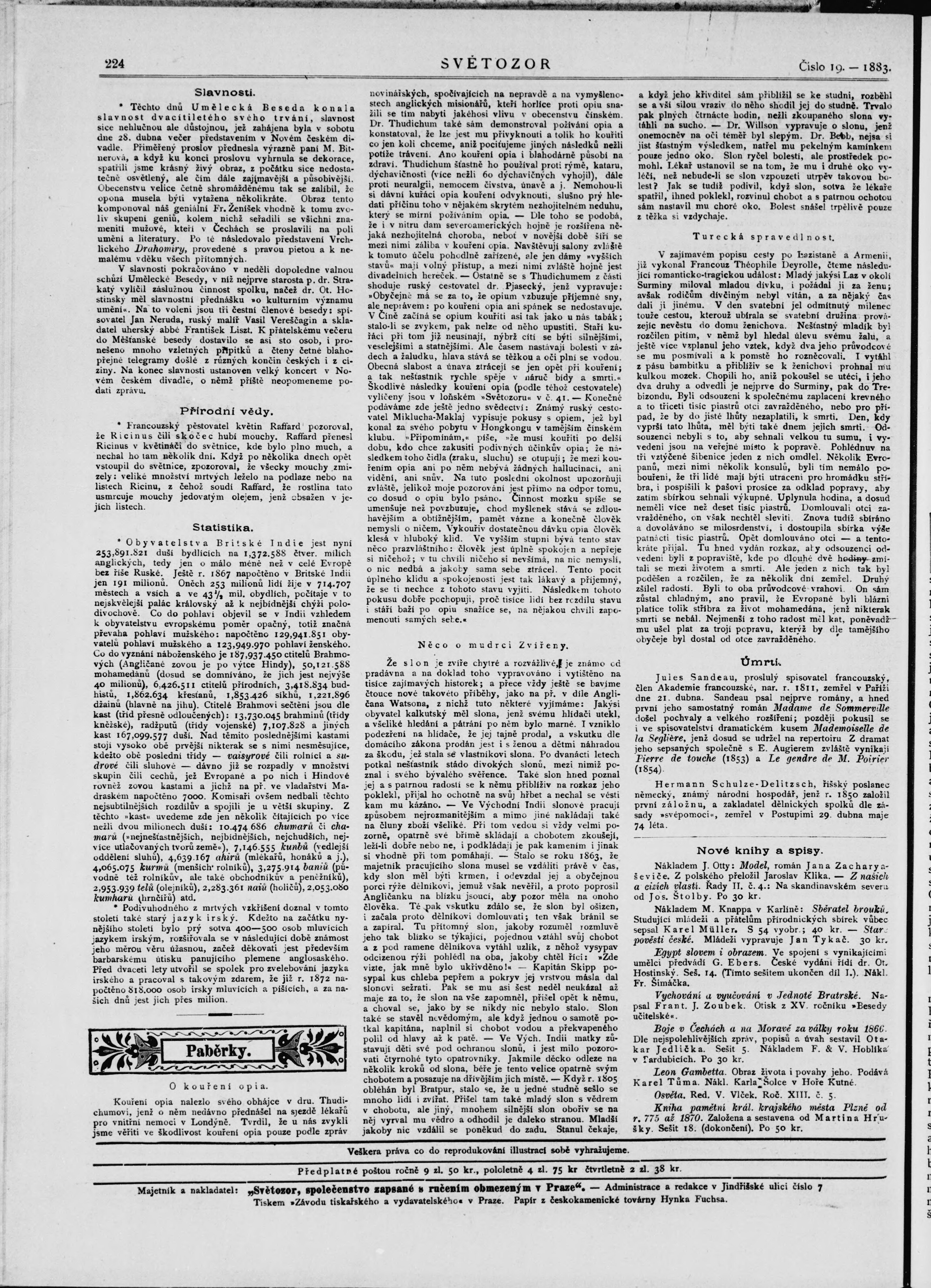 * Datum vydání výtisku: 4.5.1883 Číslo výtisku: 19