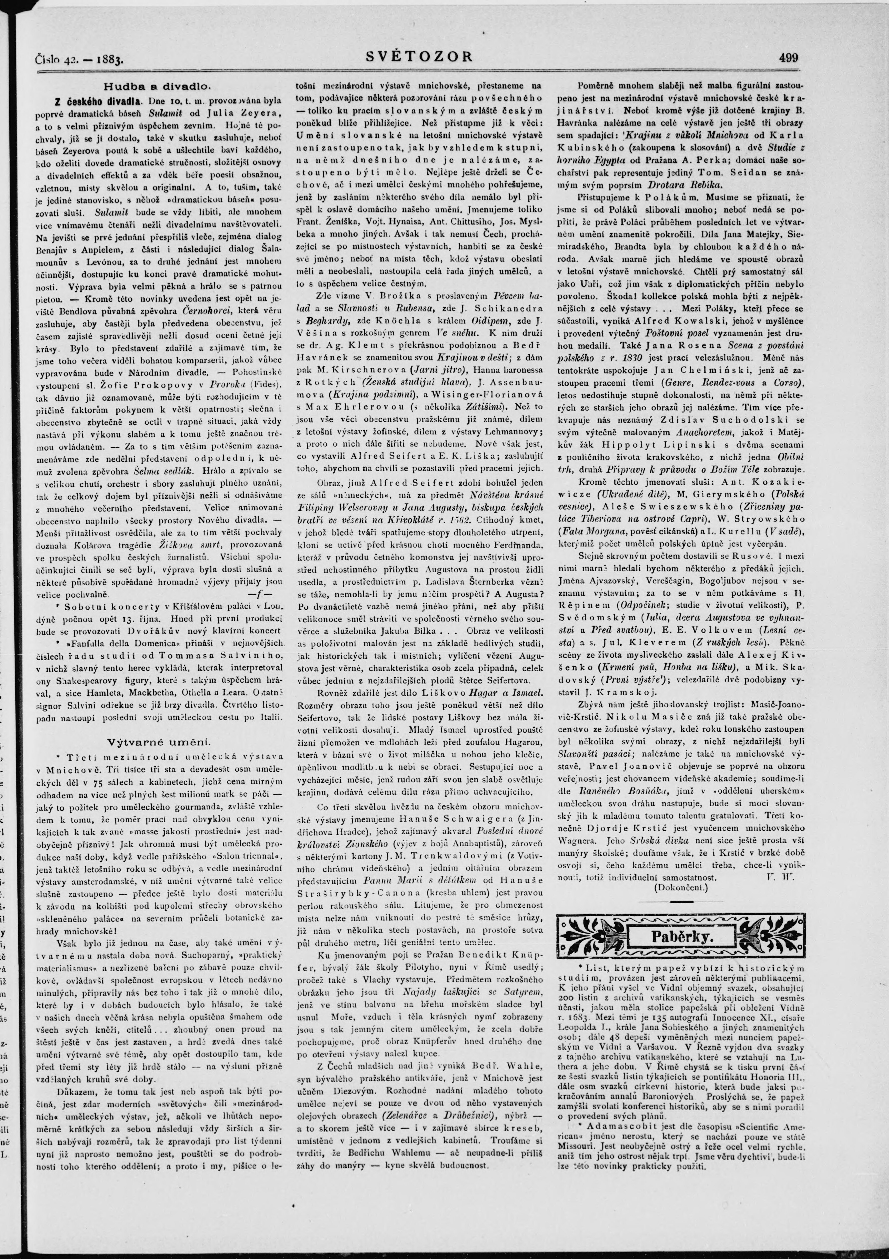 * Datum vydání výtisku: 19.10.1883 Číslo výtisku: 42