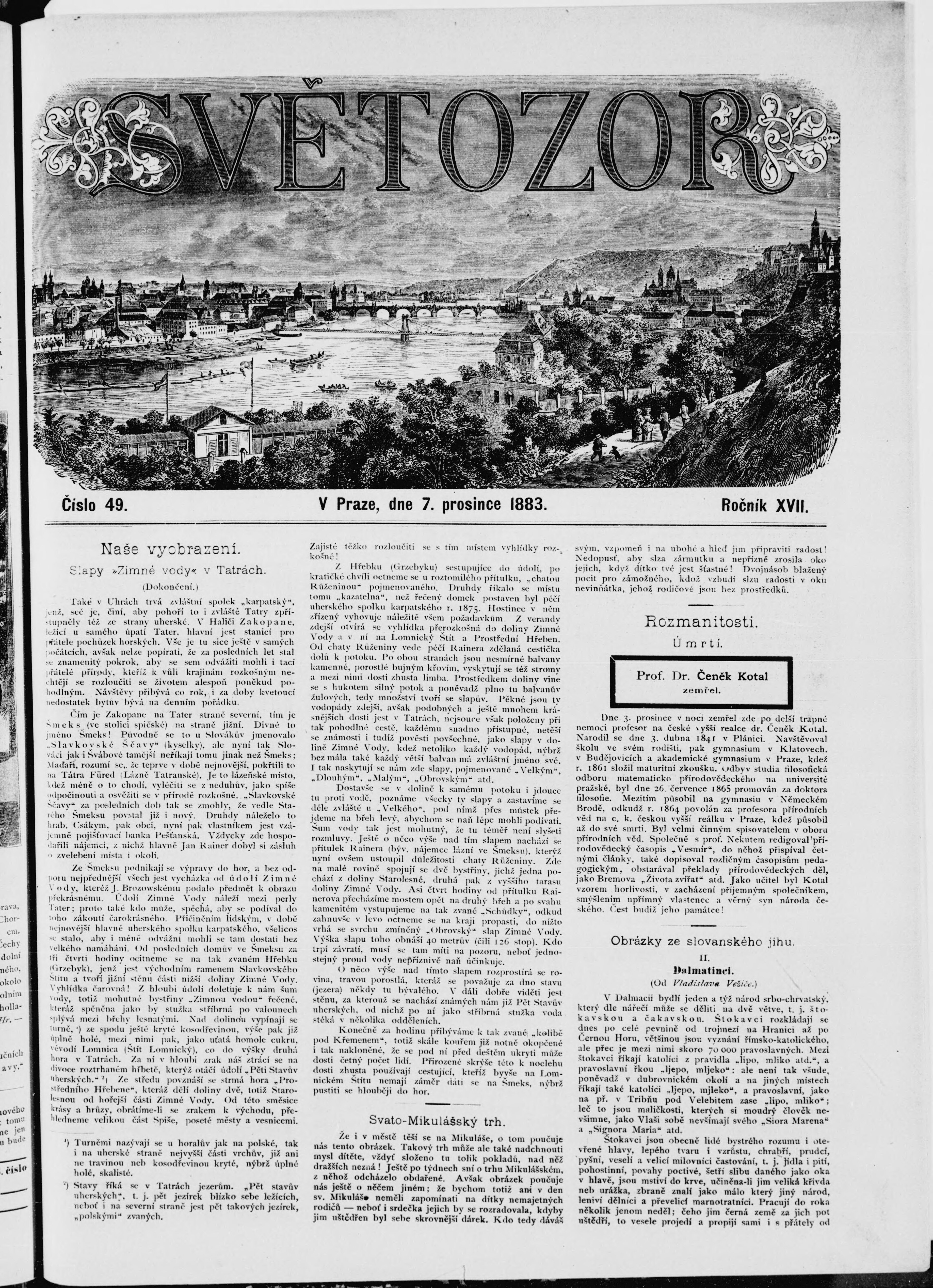 * Datum vydání výtisku: 7.12.1883 Číslo výtisku: 49 Typ výtisku: příloha