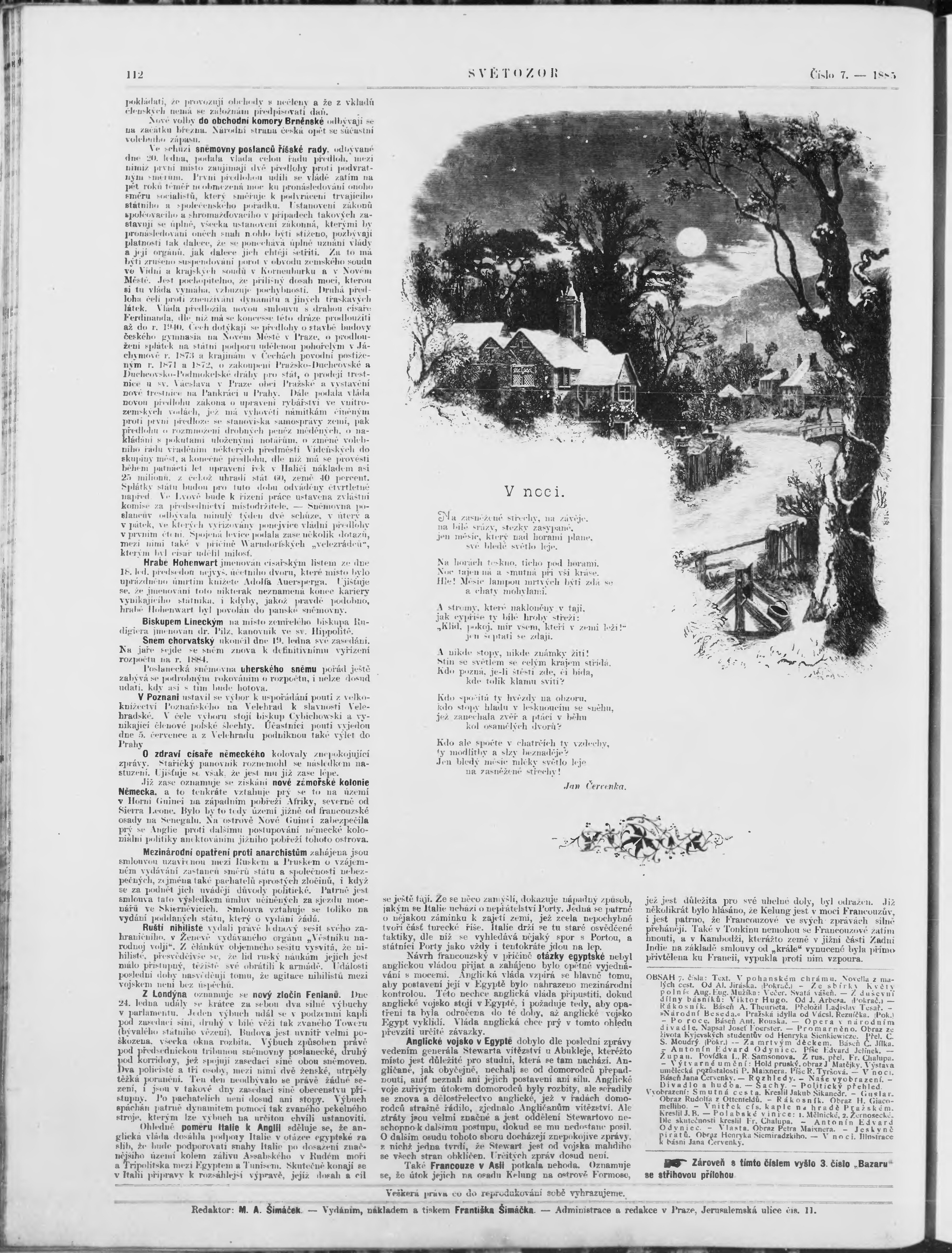 * Datum vydání výtisku: 30.1.1885 Číslo výtisku: 7