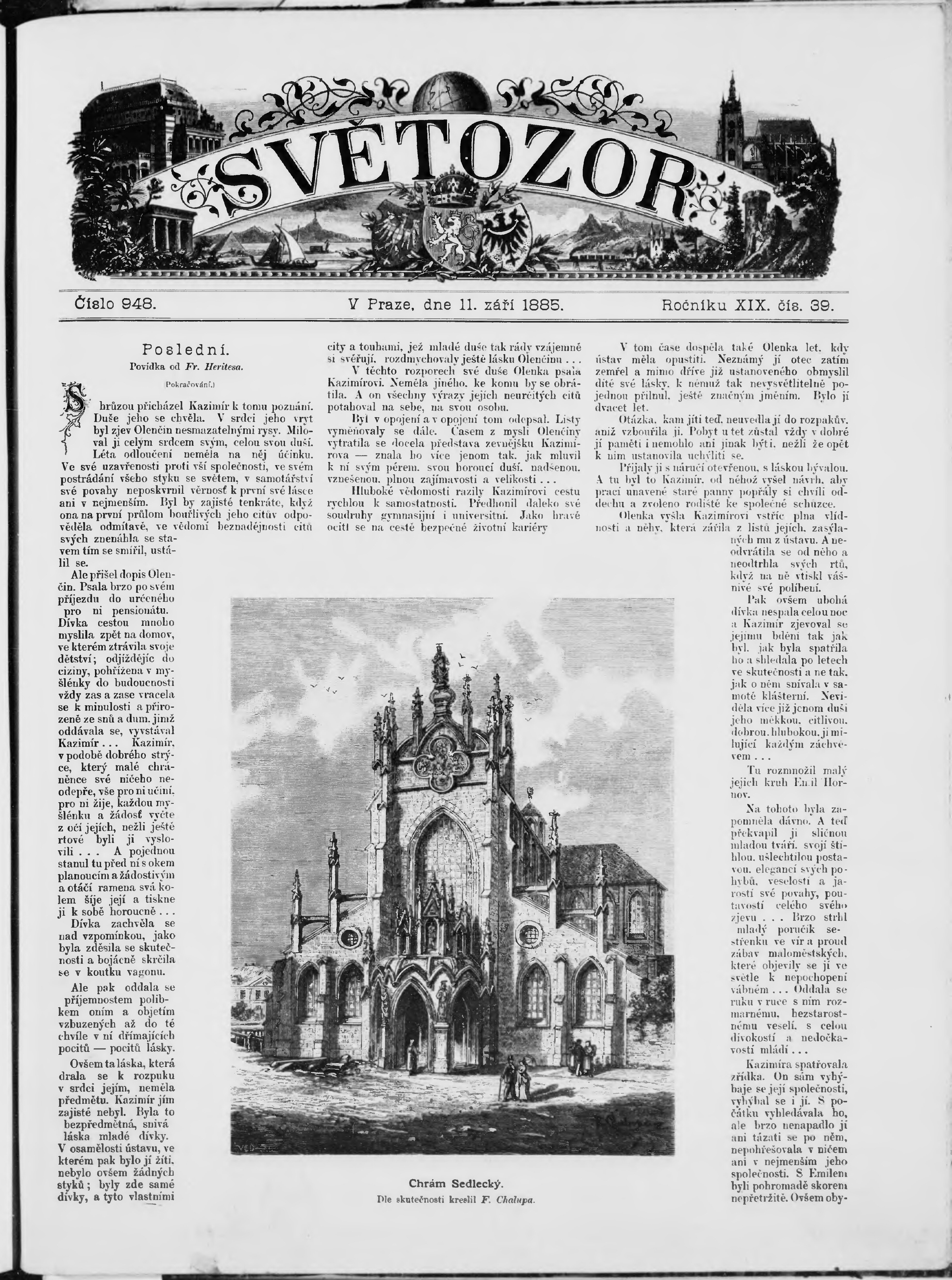 * Datum vydání výtisku: 11.9.1885 Číslo výtisku: 39