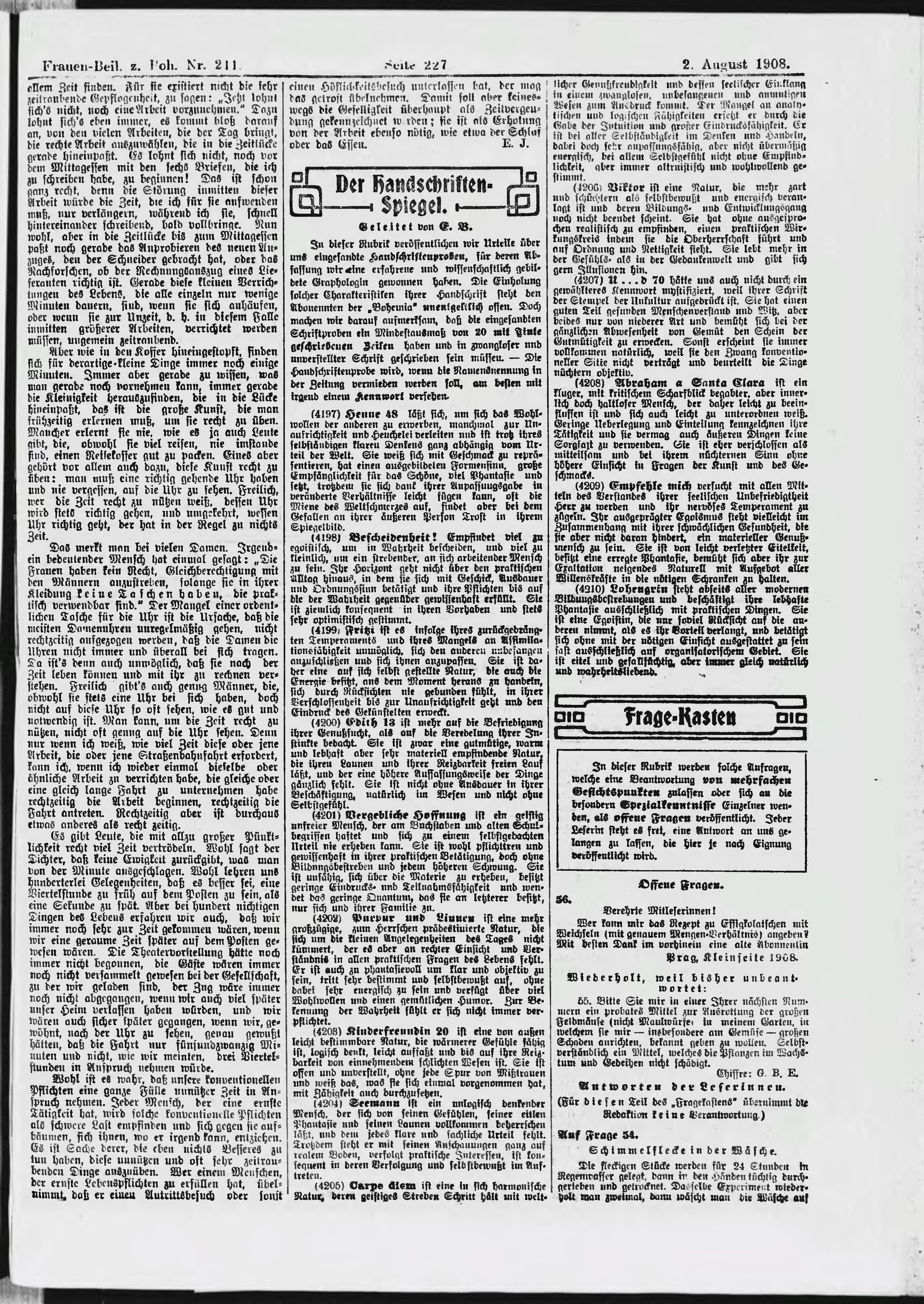 * Datum vydání výtisku: 2.8.1908 Číslo výtisku: 211 Typ výtisku: příloha
