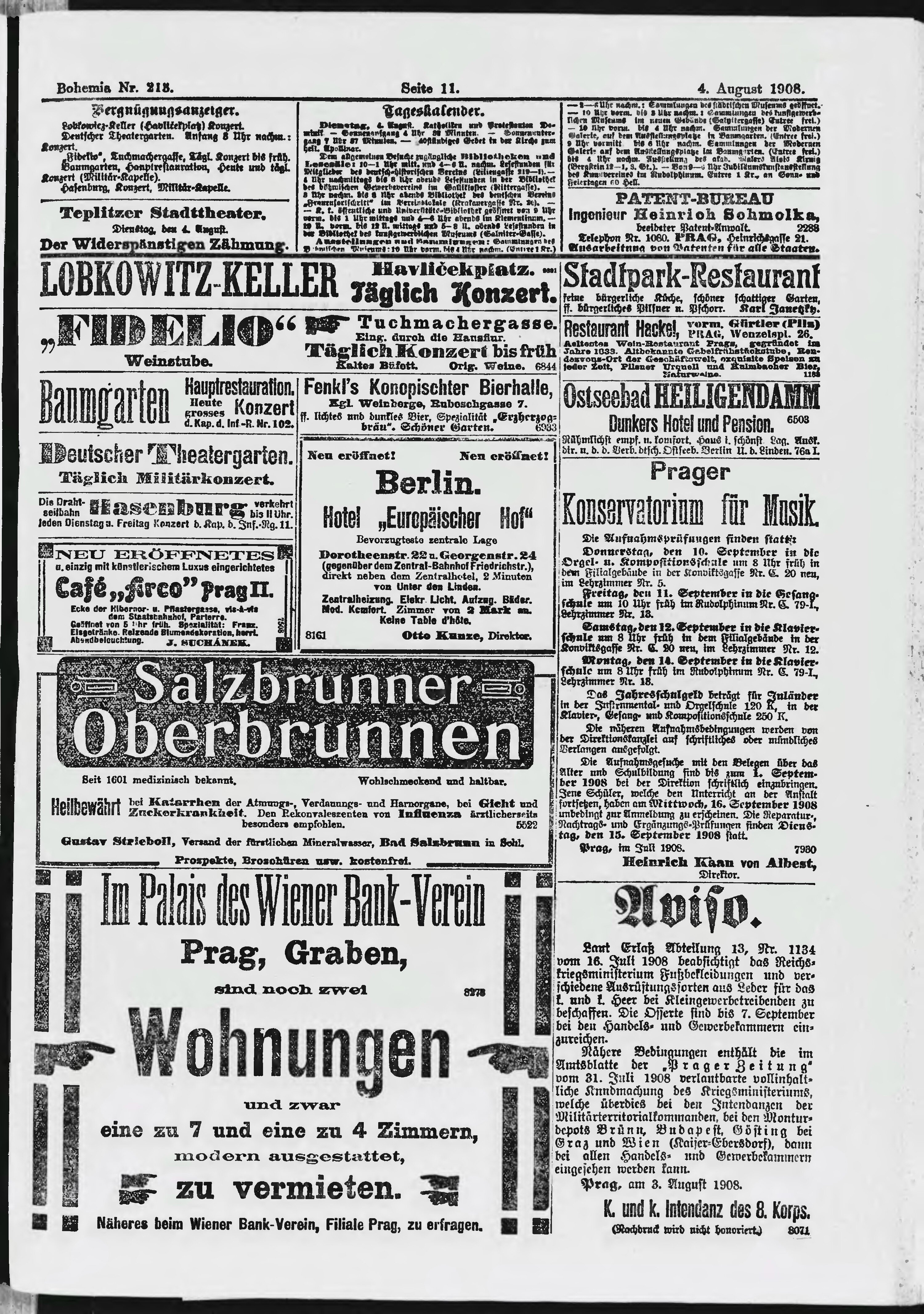 * Datum vydání výtisku: 4.8.1908 Číslo výtisku: 213 Poznámky k výtisku: ranní vydání;