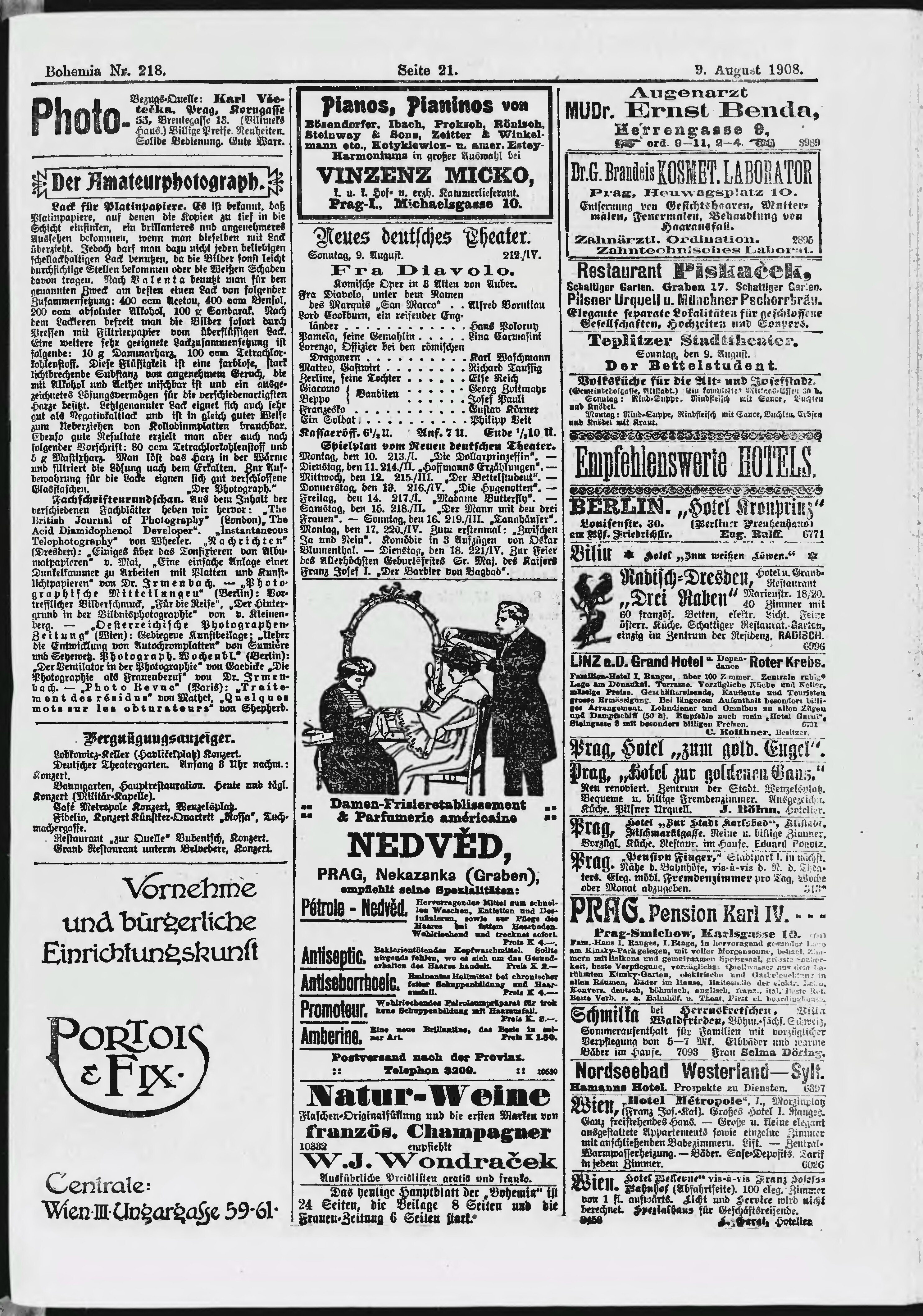 * Datum vydání výtisku: 9.8.1908 Číslo výtisku: 218 Poznámky k výtisku: ranní vydání;
