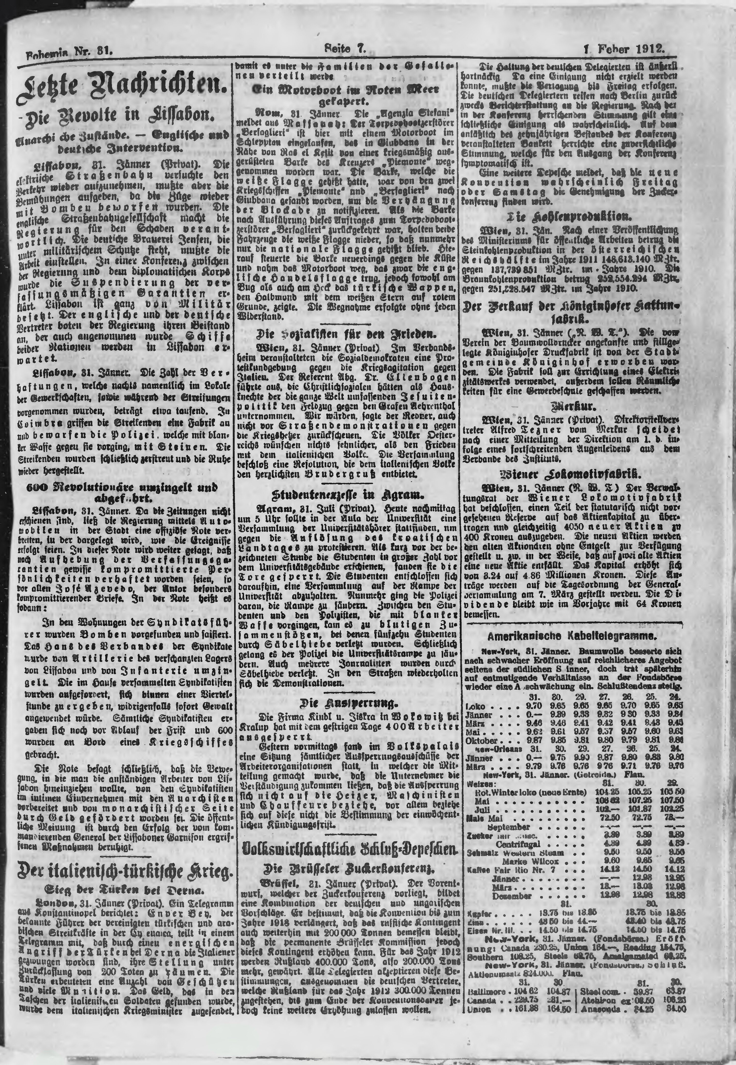 * Datum vydání výtisku: 1.2.1912 Číslo výtisku: 31 Poznámky k výtisku: ranní vydání;