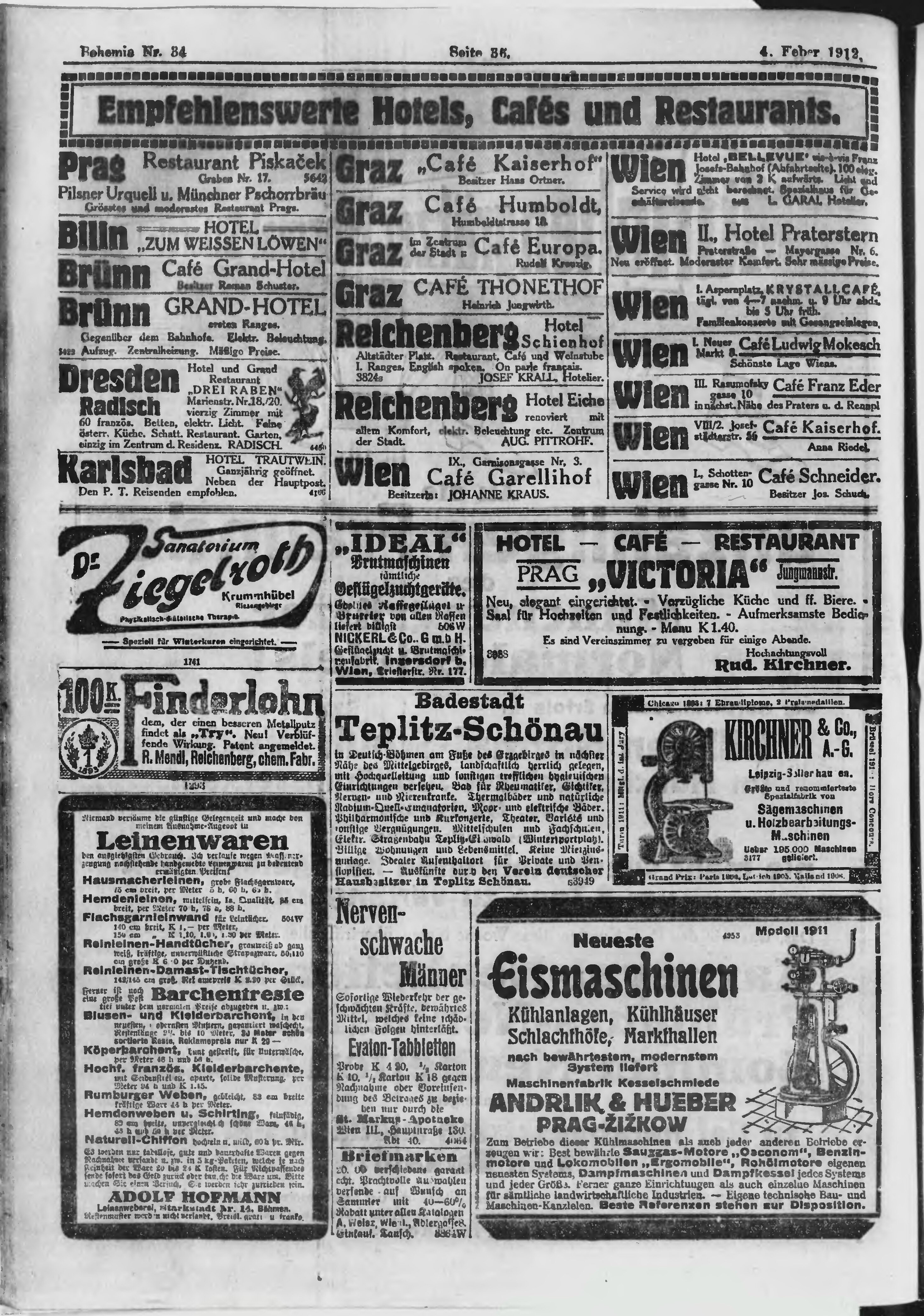 * Datum vydání výtisku: 4.2.1912 Číslo výtisku: 34 Poznámky k výtisku: ranní vydání;