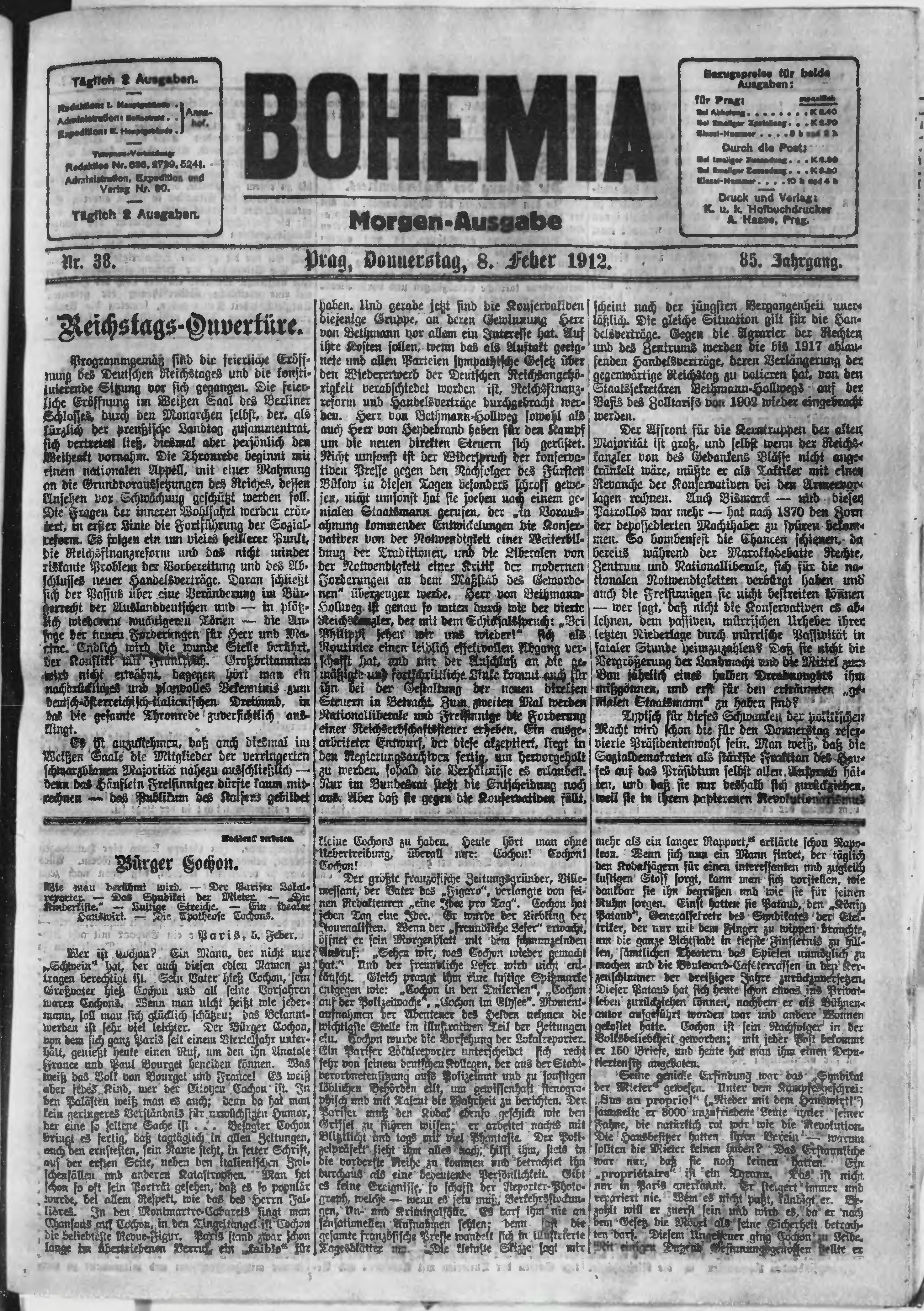 * Datum vydání výtisku: 8.2.1912 Číslo výtisku: 38 Poznámky k výtisku: ranní vydání;