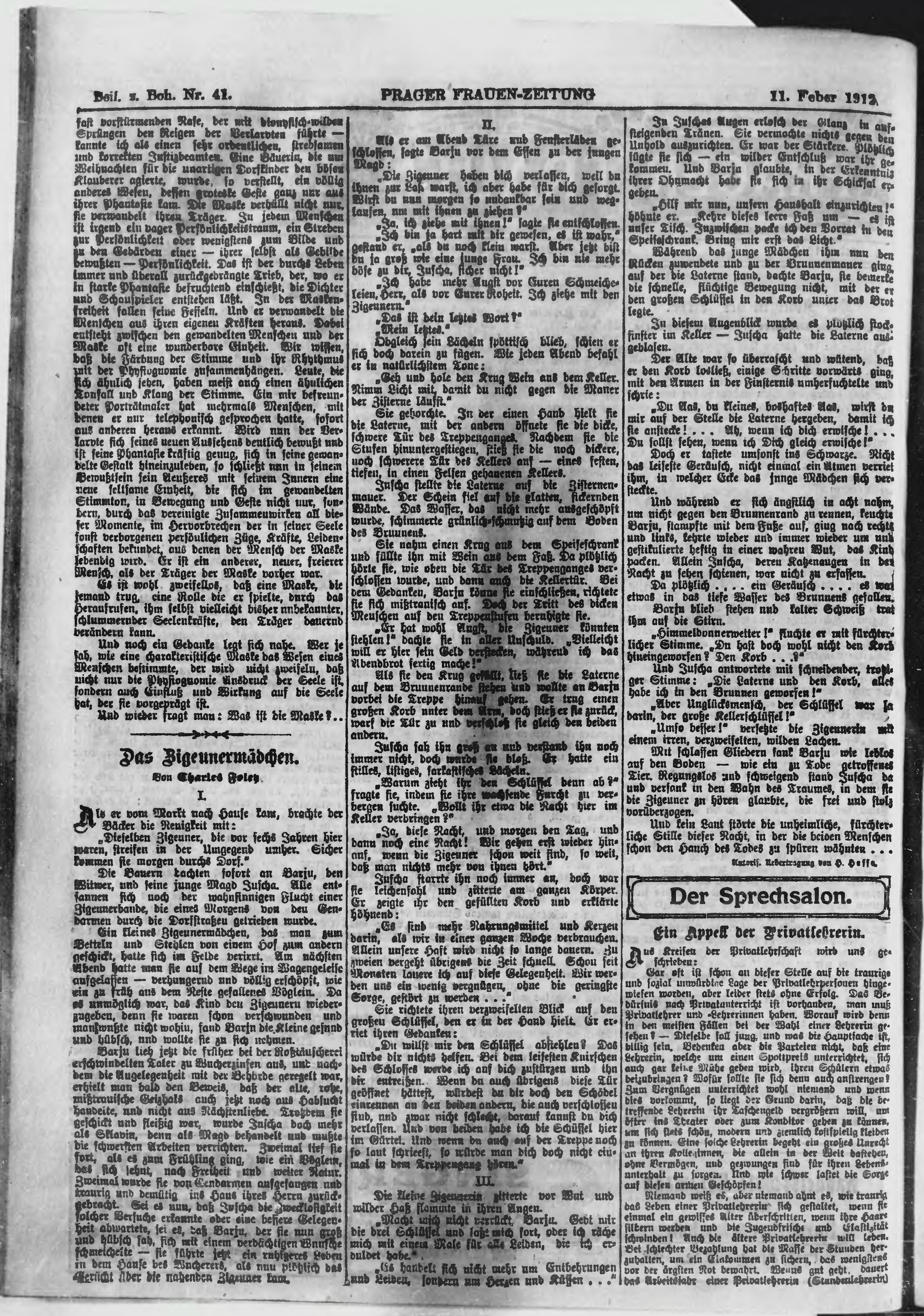 * Datum vydání výtisku: 11.2.1912 Číslo výtisku: 41 Poznámky k výtisku: ranní vydání;