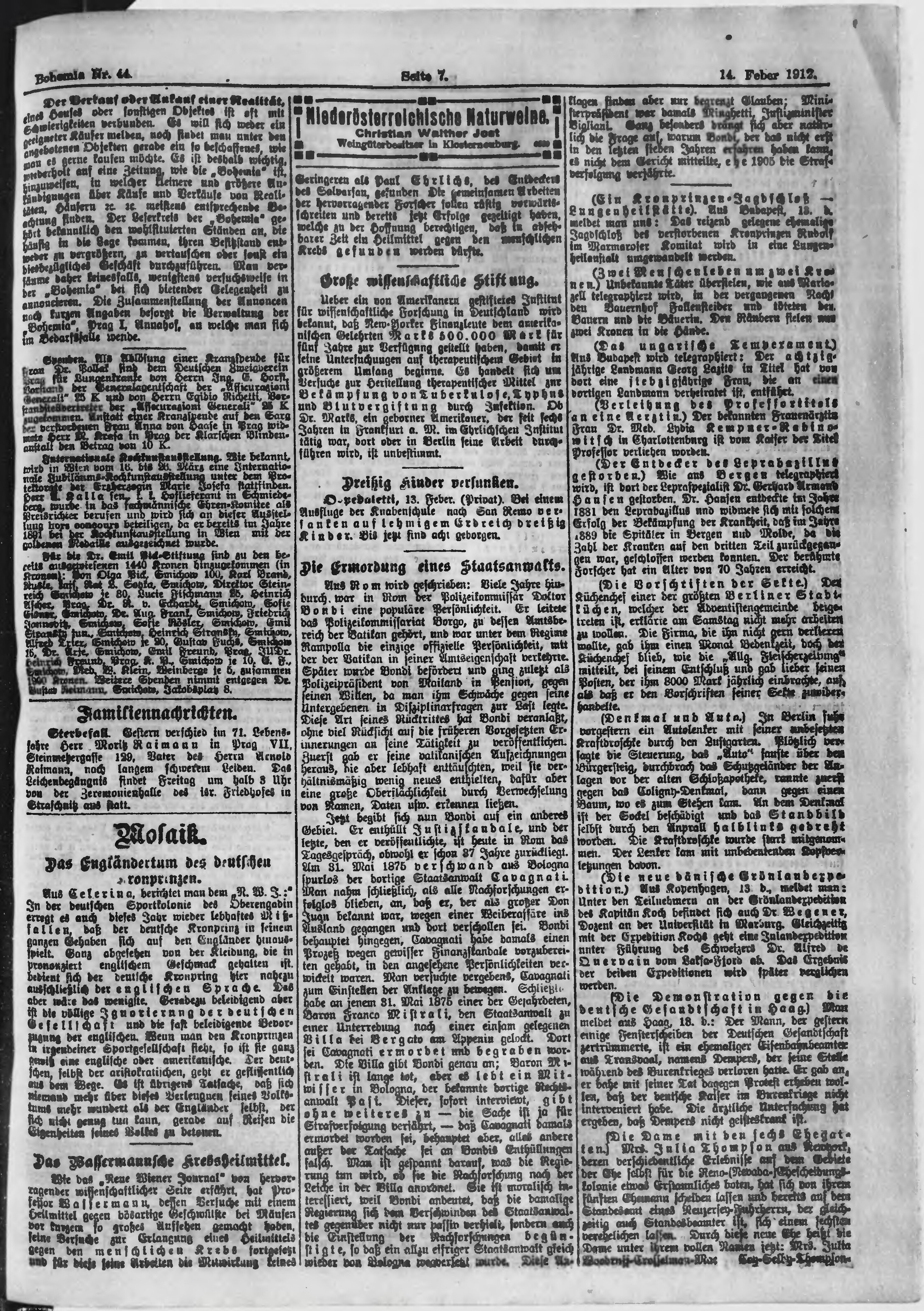 * Datum vydání výtisku: 14.2.1912 Číslo výtisku: 44 Poznámky k výtisku: ranní vydání;