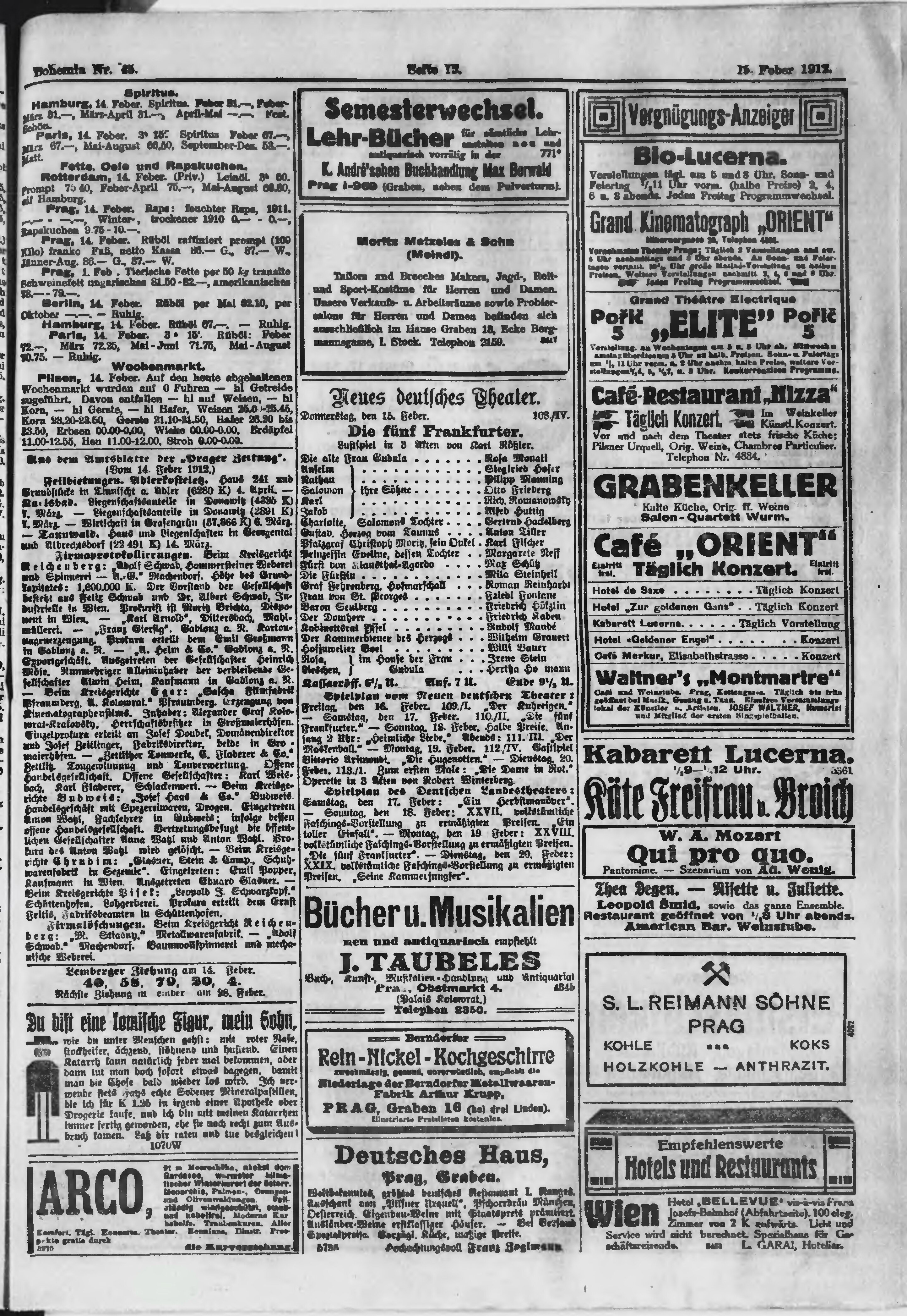 * Datum vydání výtisku: 15.2.1912 Číslo výtisku: 45 Poznámky k výtisku: ranní vydání;