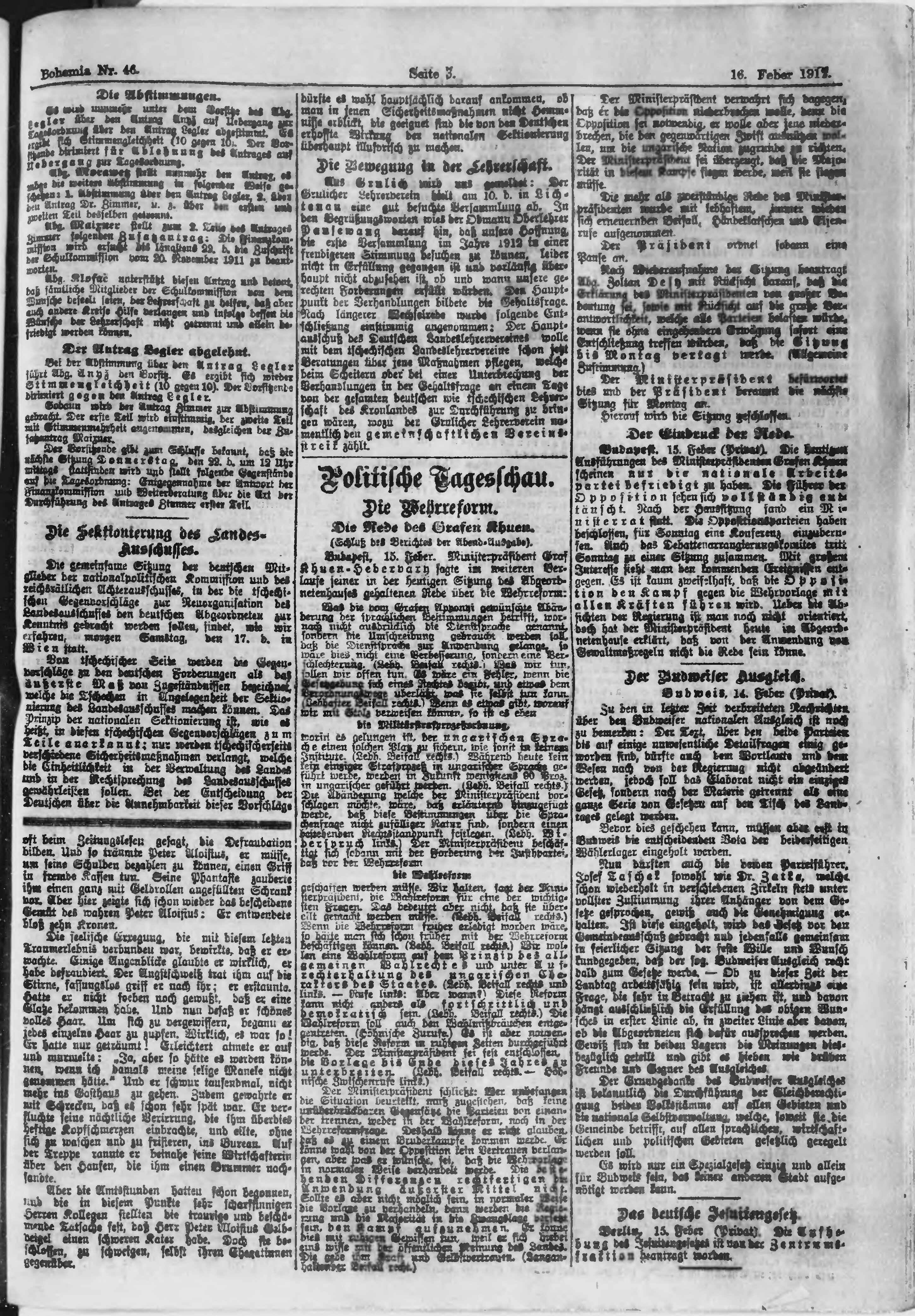 * Datum vydání výtisku: 16.2.1912 Číslo výtisku: 46 Poznámky k výtisku: ranní vydání;