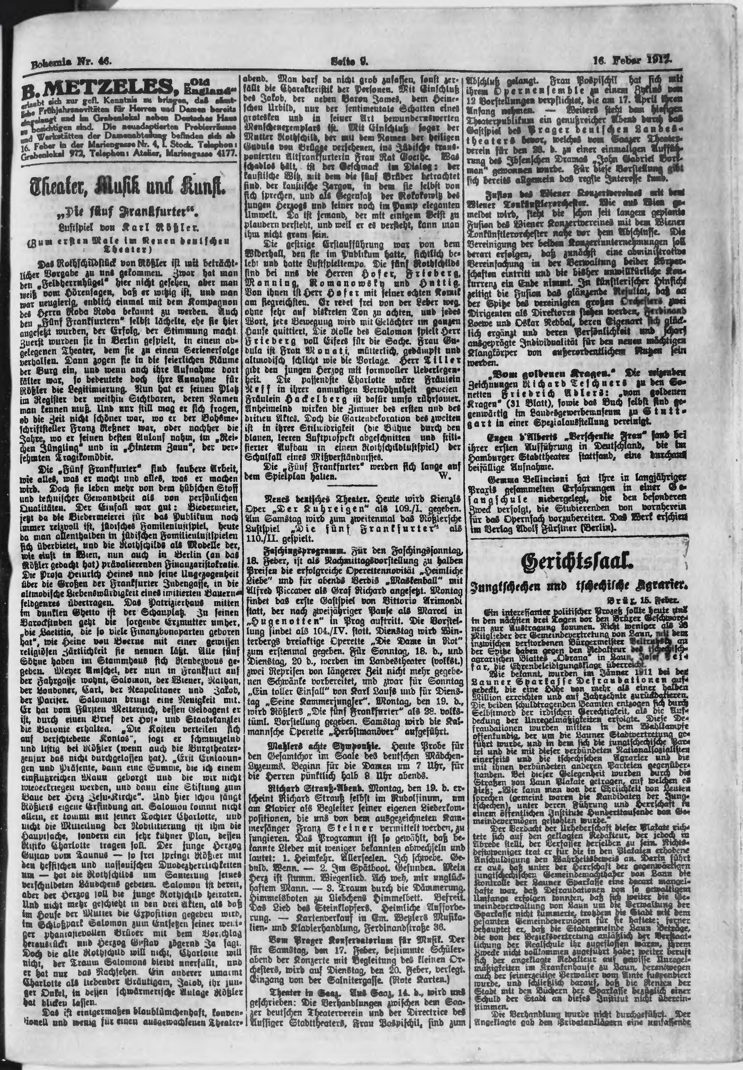 * Datum vydání výtisku: 16.2.1912 Číslo výtisku: 46 Poznámky k výtisku: ranní vydání;