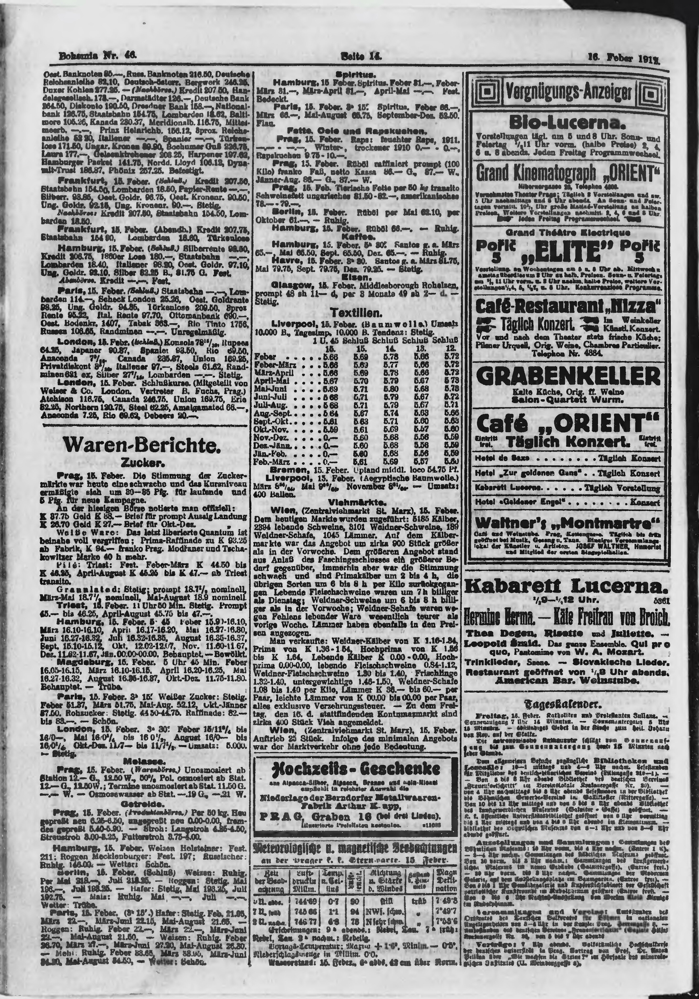 * Datum vydání výtisku: 16.2.1912 Číslo výtisku: 46 Poznámky k výtisku: ranní vydání;