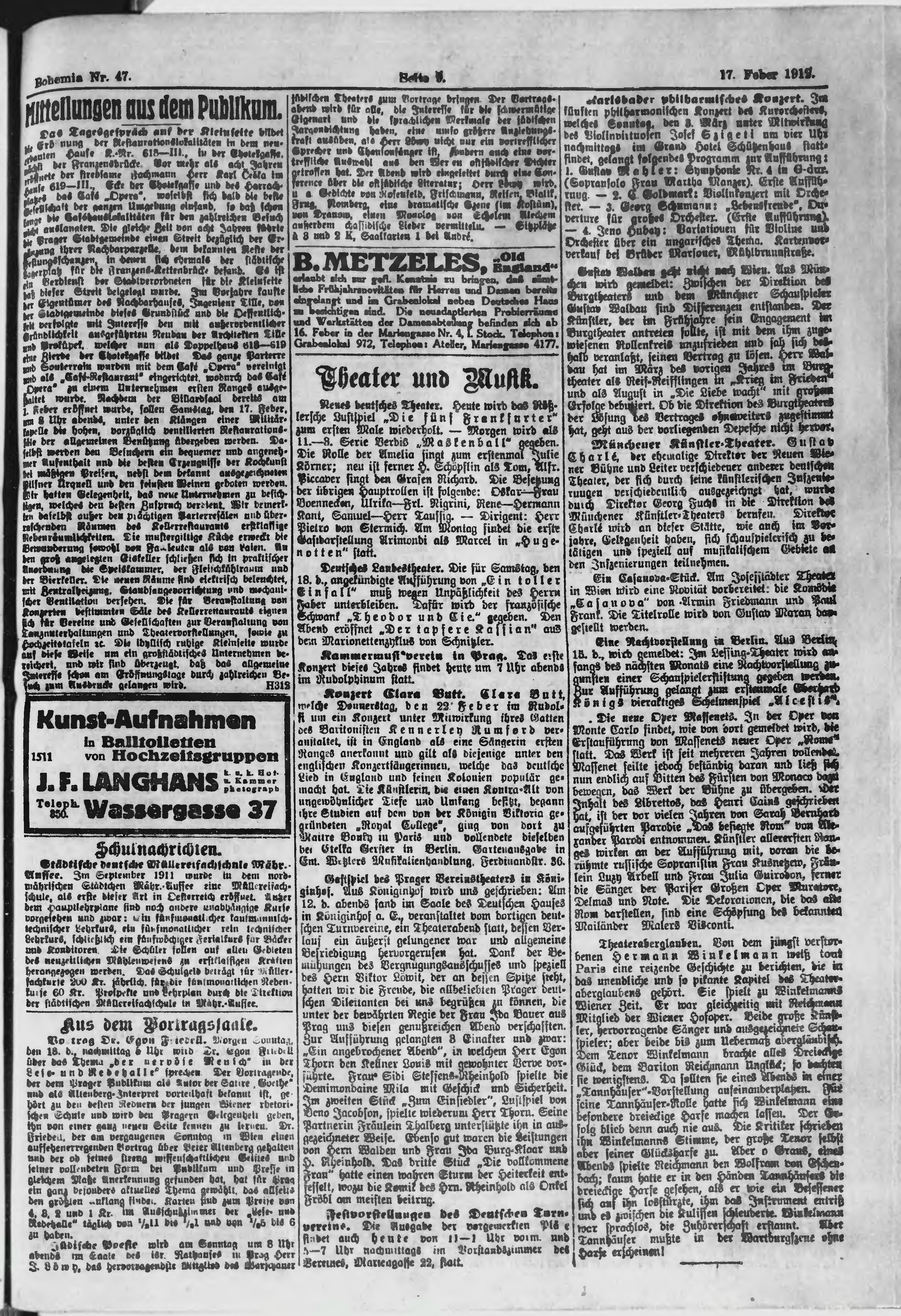 * Datum vydání výtisku: 17.2.1912 Číslo výtisku: 47 Poznámky k výtisku: ranní vydání;