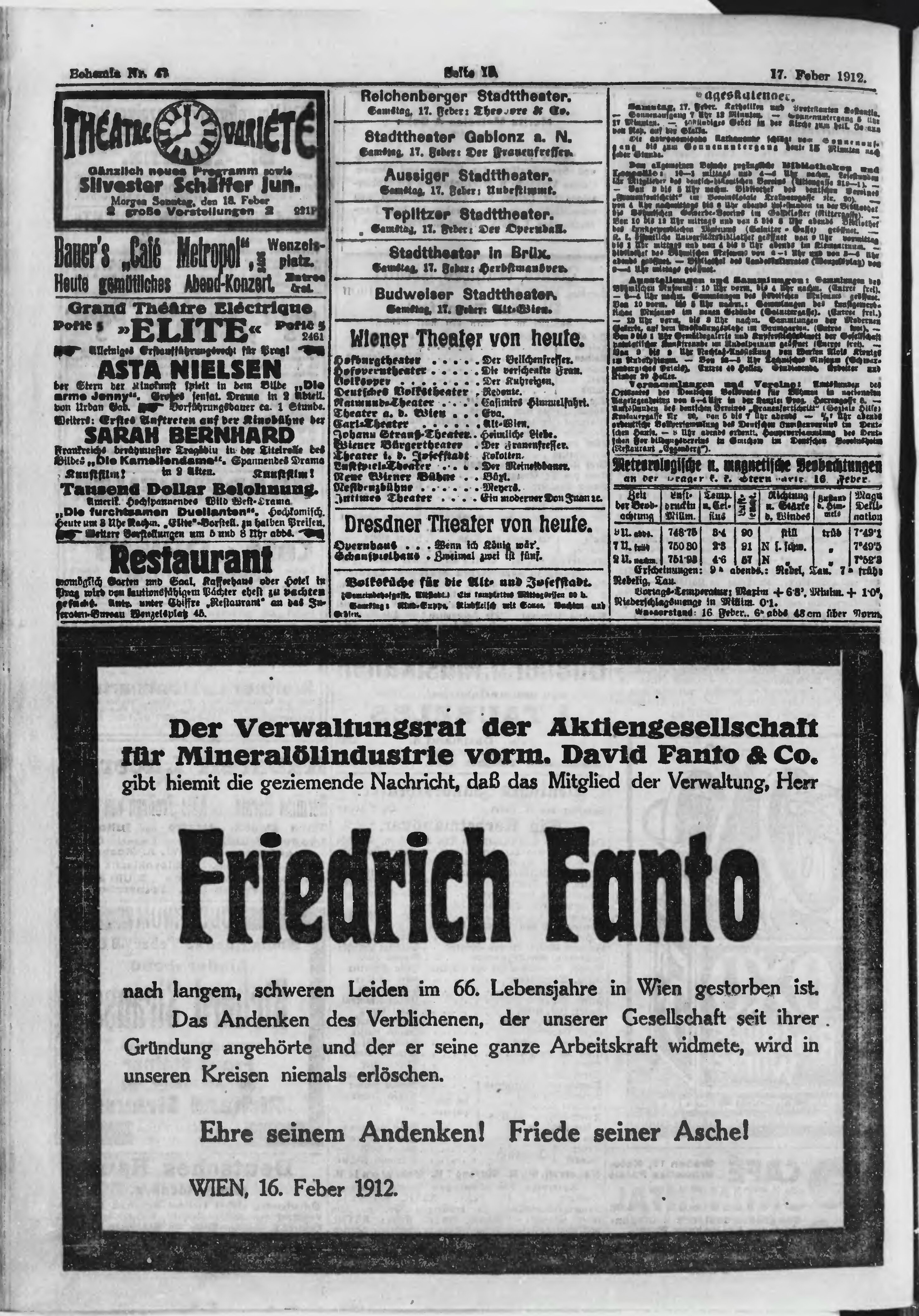 * Datum vydání výtisku: 17.2.1912 Číslo výtisku: 47 Poznámky k výtisku: ranní vydání;