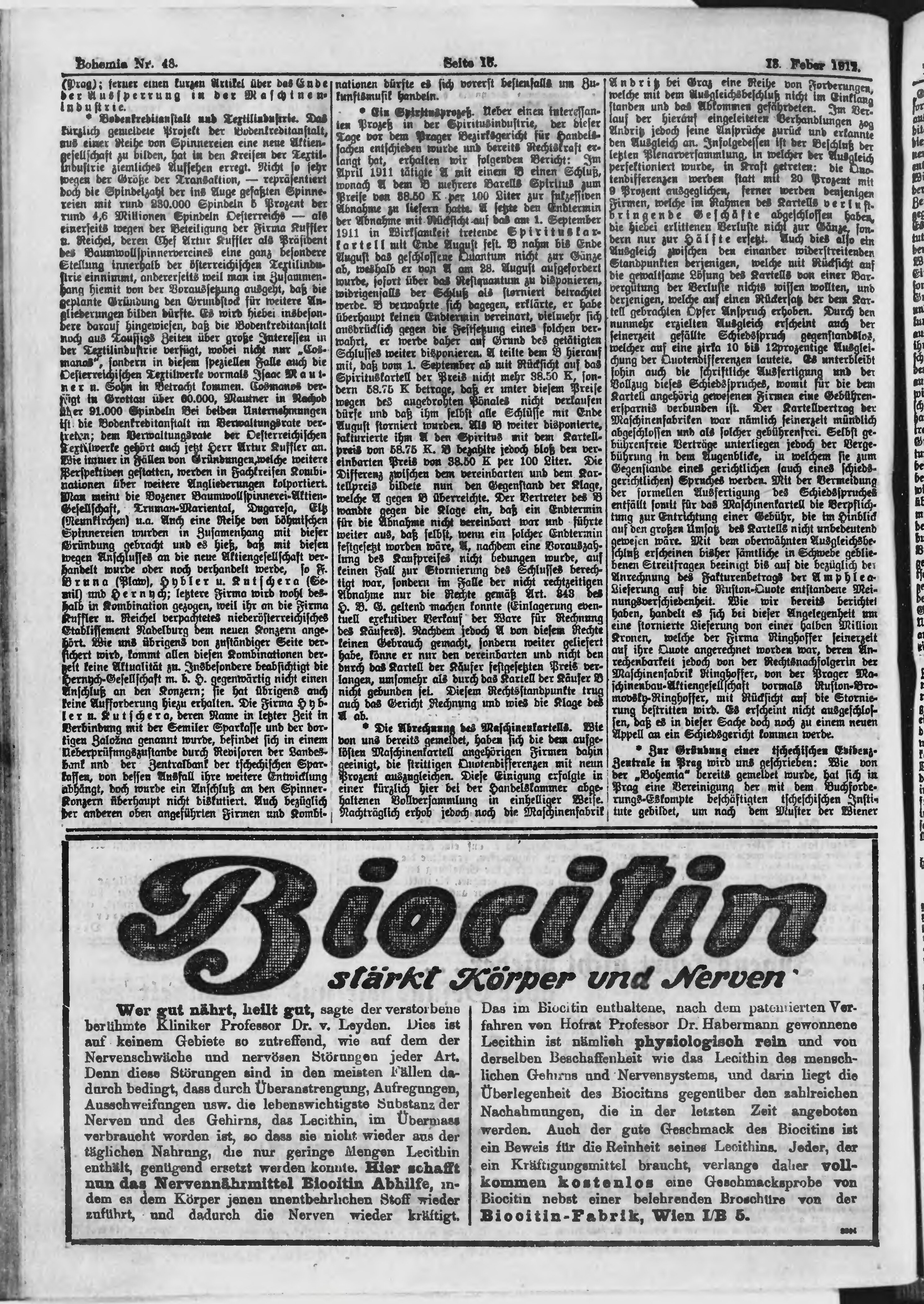 * Datum vydání výtisku: 18.2.1912 Číslo výtisku: 48 Poznámky k výtisku: ranní vydání;