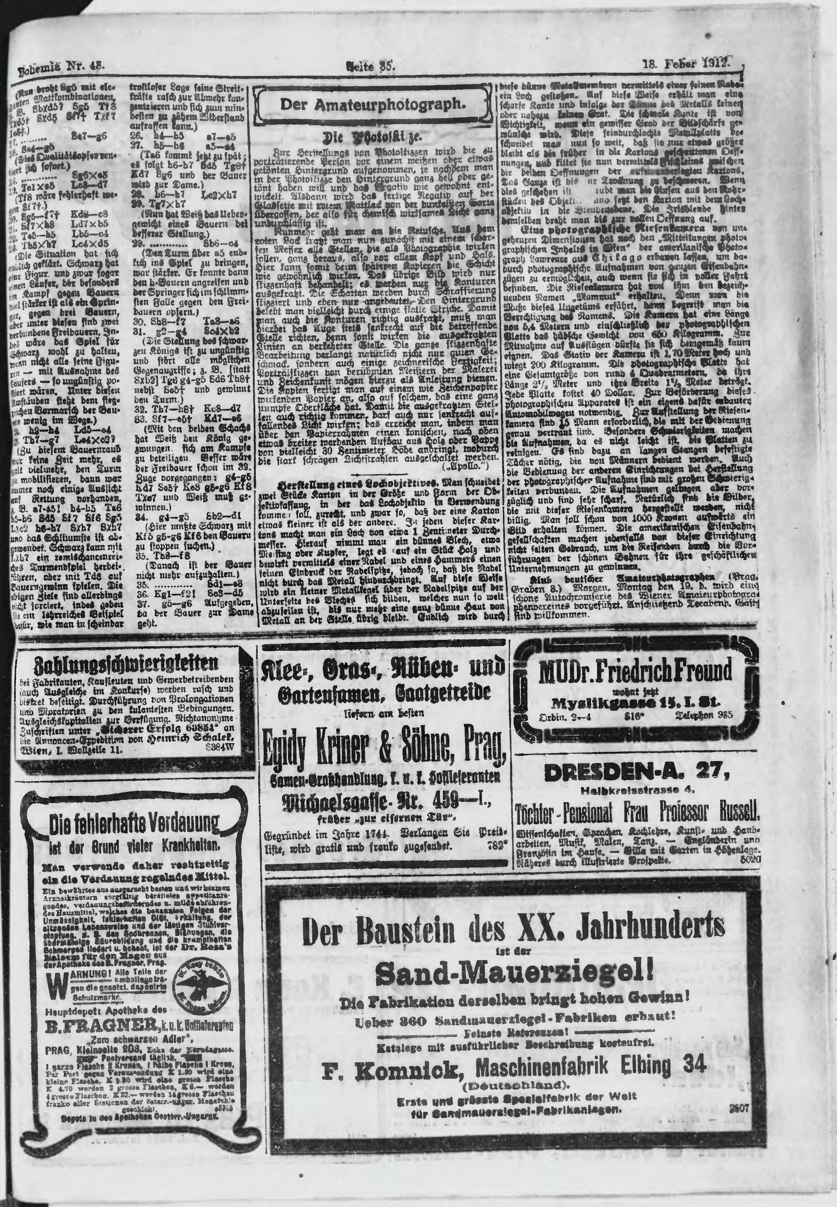* Datum vydání výtisku: 18.2.1912 Číslo výtisku: 48 Poznámky k výtisku: ranní vydání;