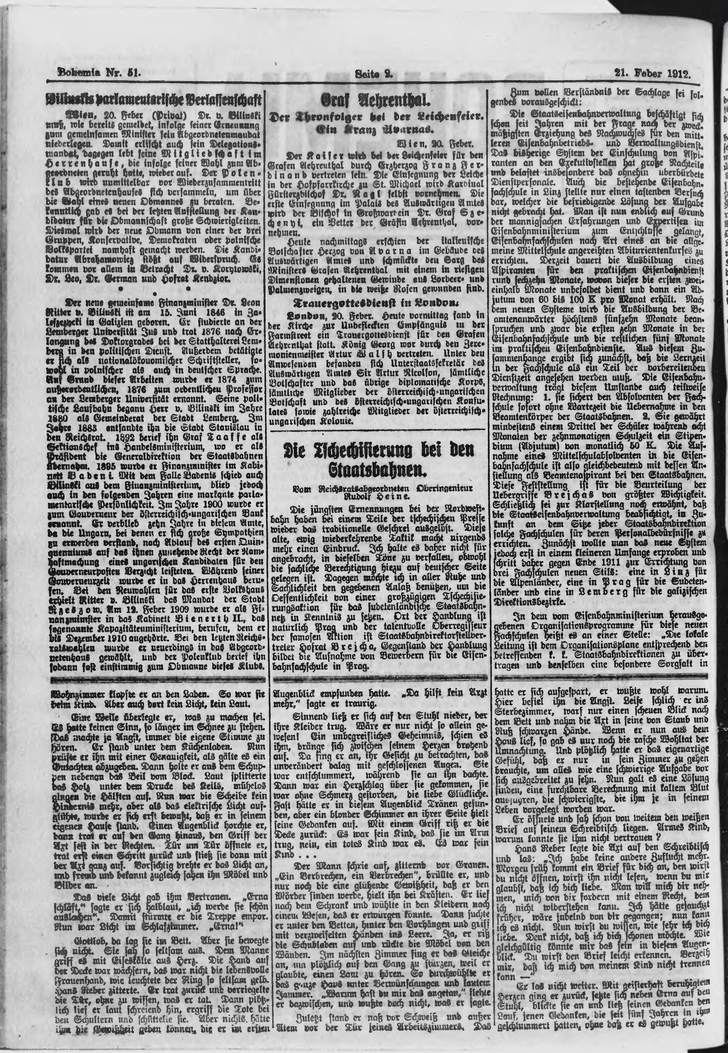 * Datum vydání výtisku: 21.2.1912 Číslo výtisku: 51 Poznámky k výtisku: ranní vydání;