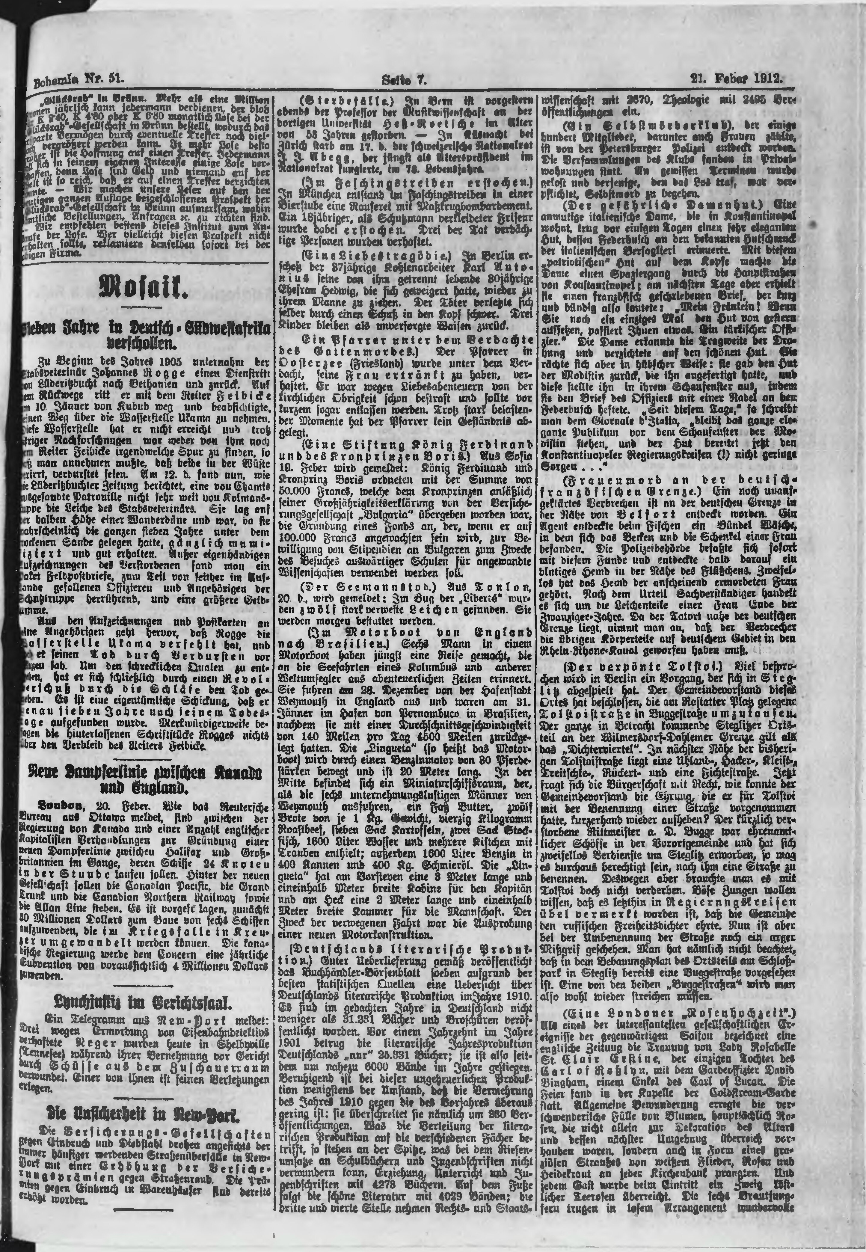 * Datum vydání výtisku: 21.2.1912 Číslo výtisku: 51 Poznámky k výtisku: ranní vydání;