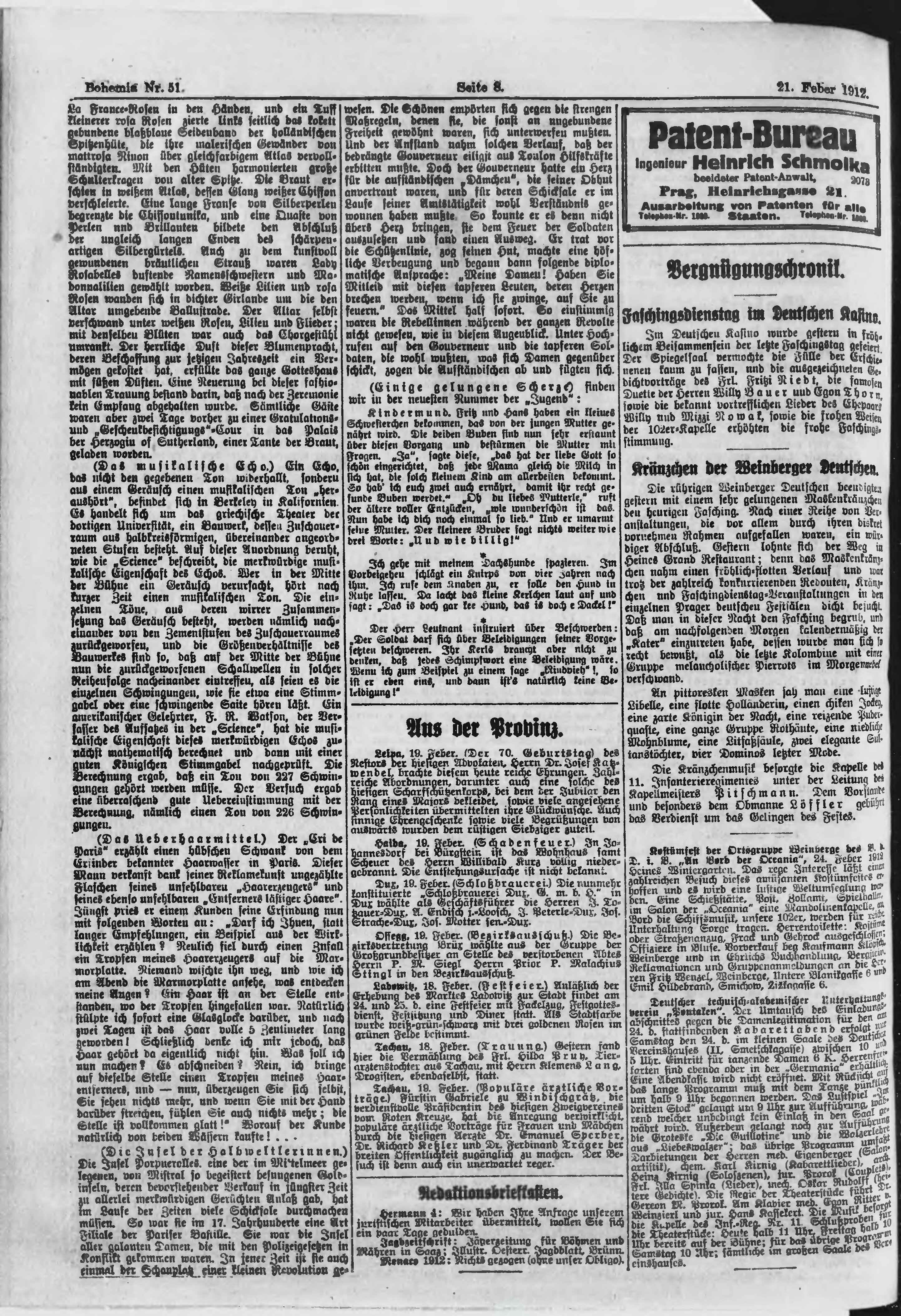 * Datum vydání výtisku: 21.2.1912 Číslo výtisku: 51 Poznámky k výtisku: ranní vydání;