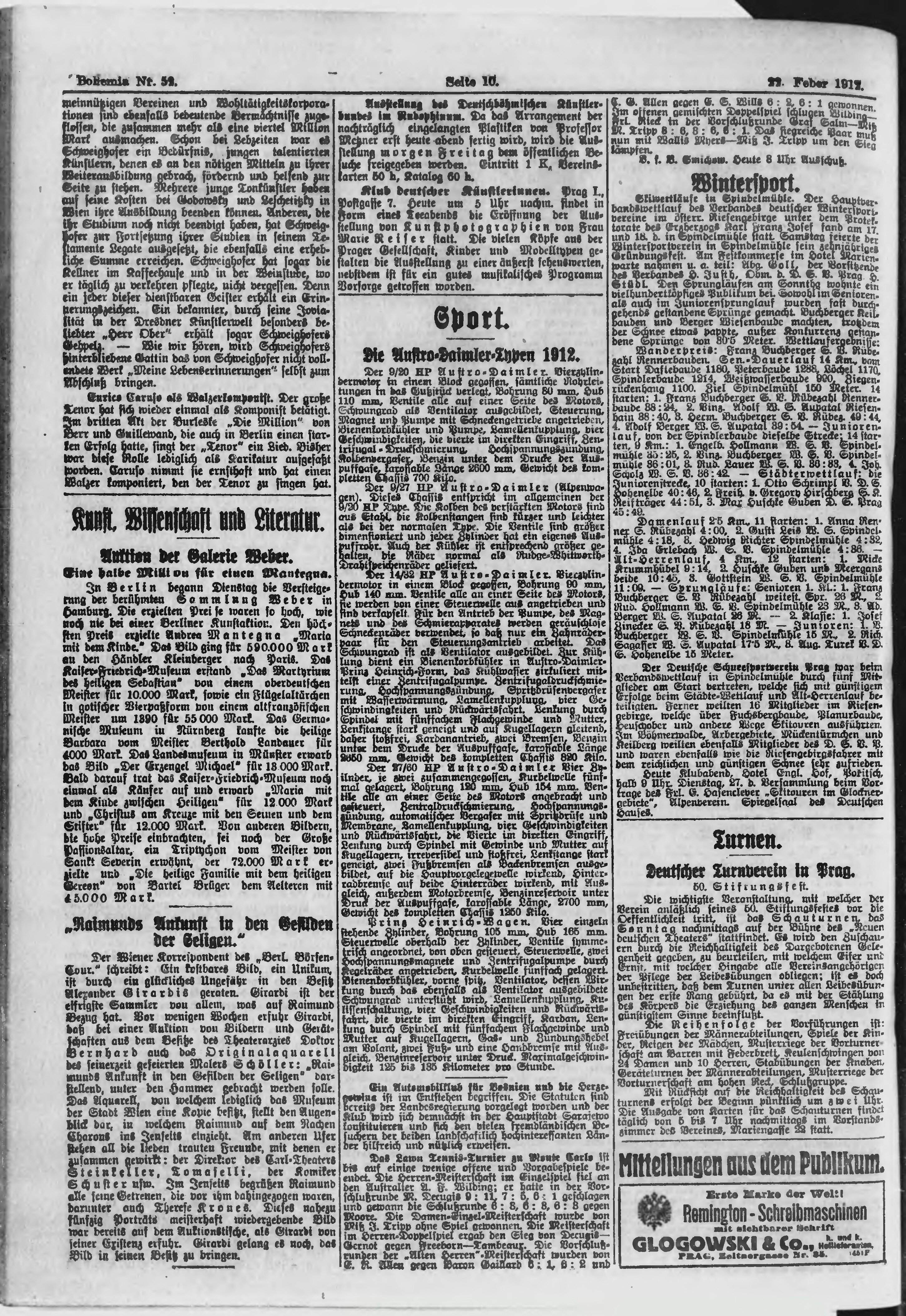* Datum vydání výtisku: 22.2.1912 Číslo výtisku: 52 Poznámky k výtisku: ranní vydání;