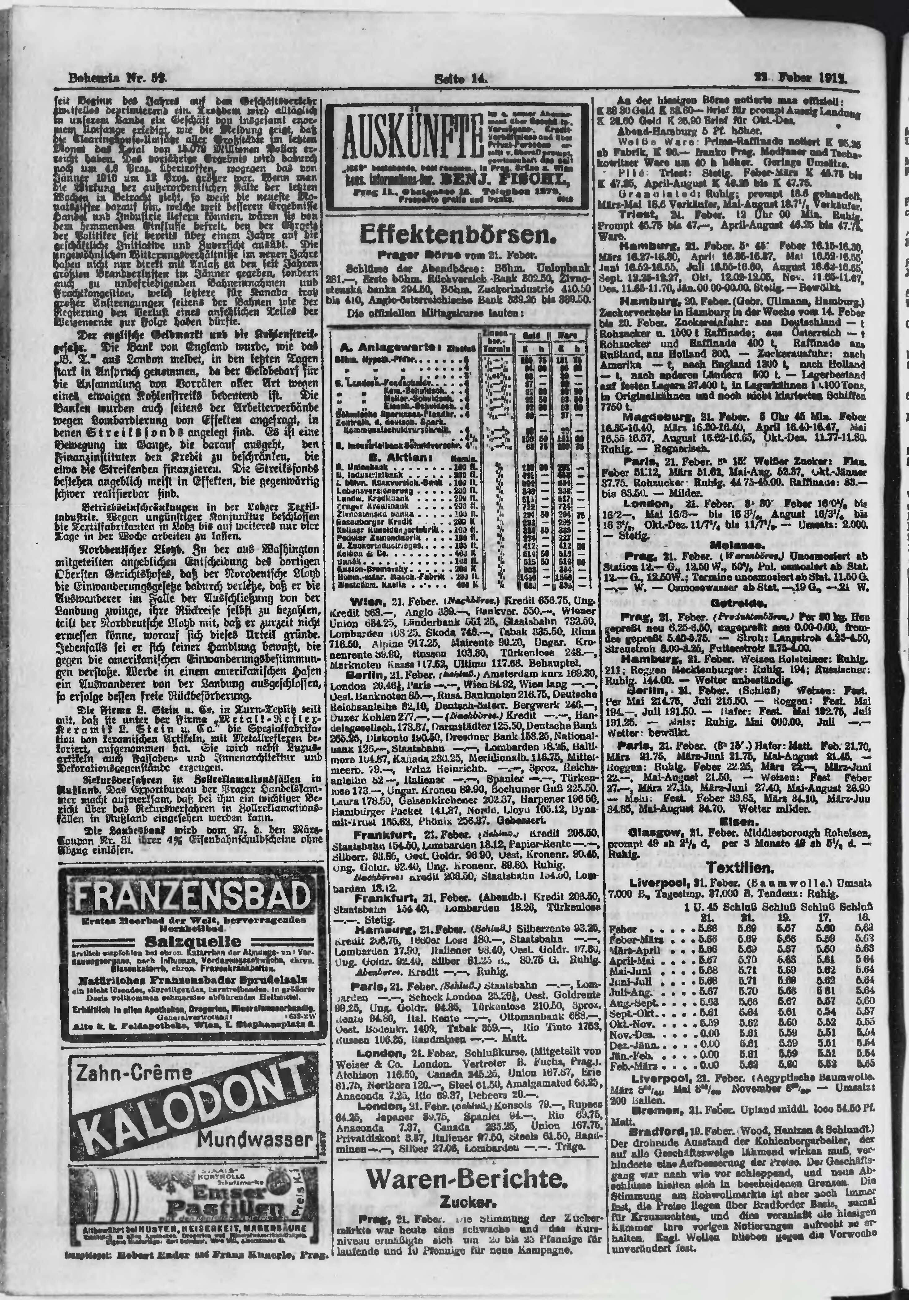 * Datum vydání výtisku: 22.2.1912 Číslo výtisku: 52 Poznámky k výtisku: ranní vydání;