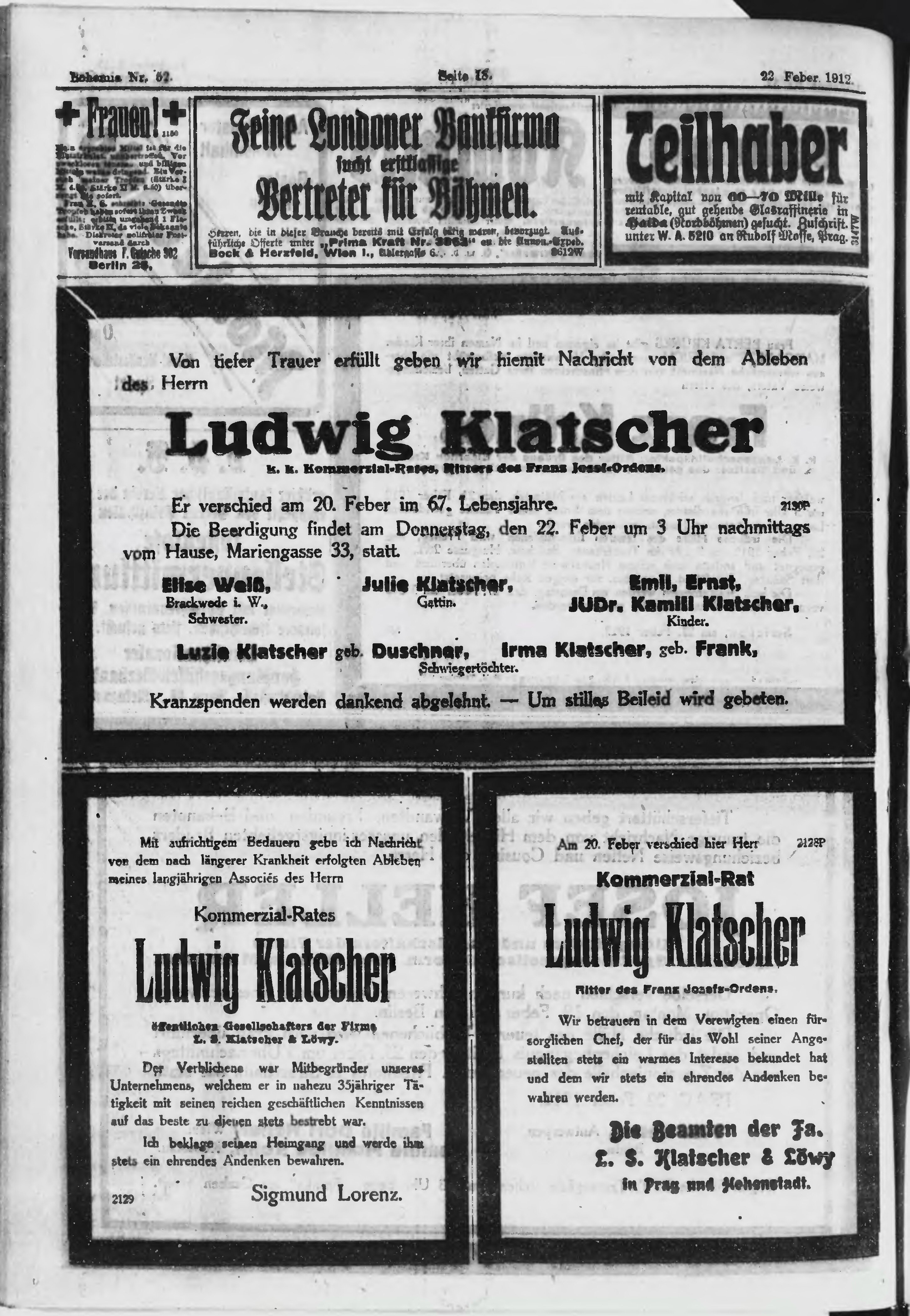 * Datum vydání výtisku: 22.2.1912 Číslo výtisku: 52 Poznámky k výtisku: ranní vydání;