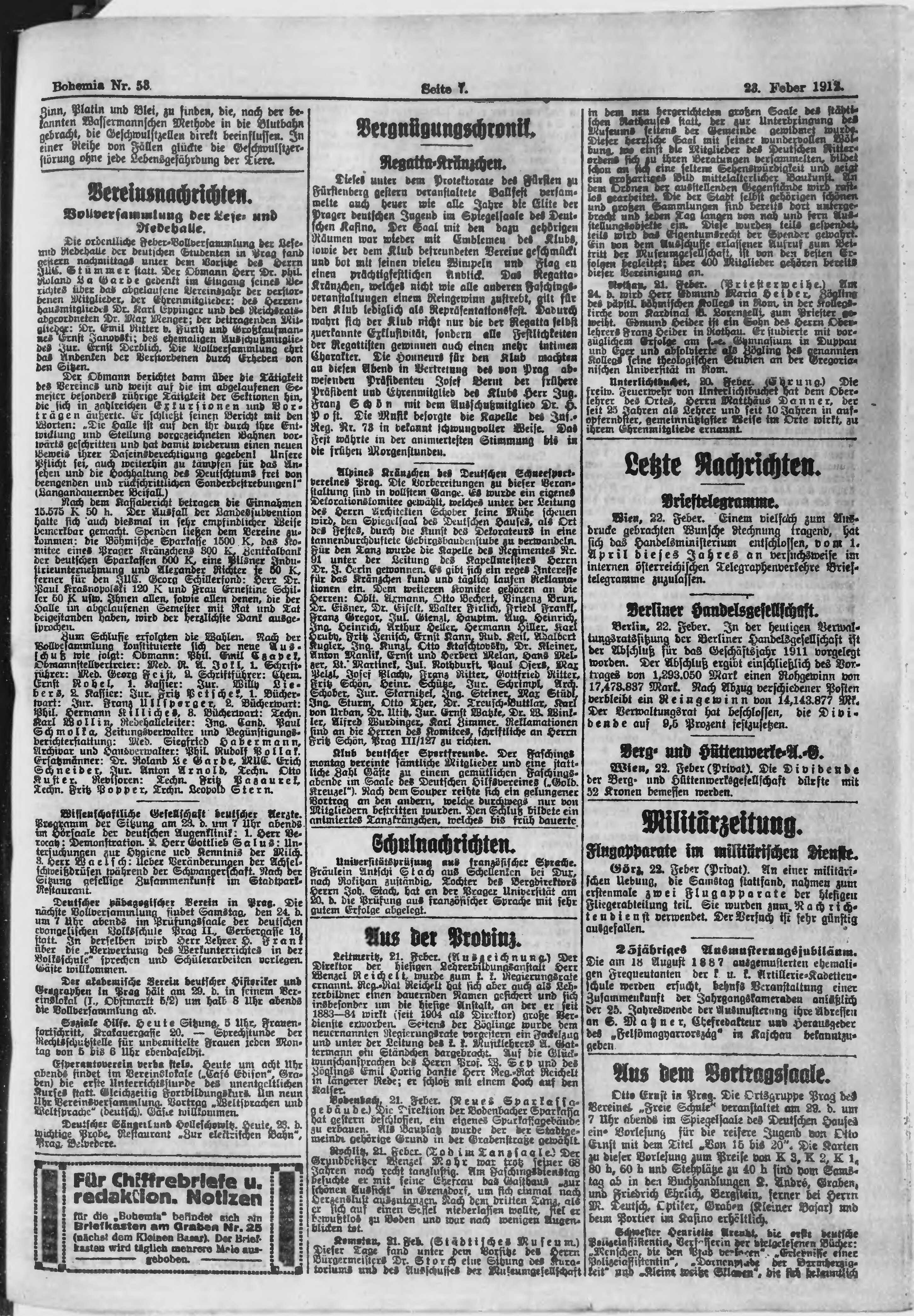 * Datum vydání výtisku: 23.2.1912 Číslo výtisku: 53 Poznámky k výtisku: ranní vydání;