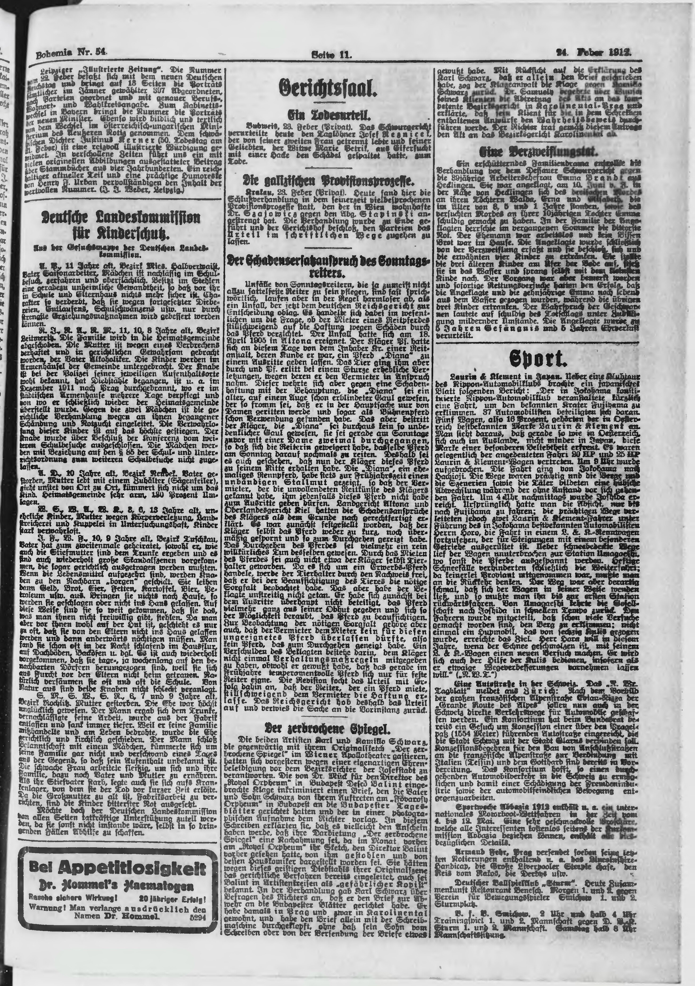 * Datum vydání výtisku: 24.2.1912 Číslo výtisku: 54 Poznámky k výtisku: ranní vydání;