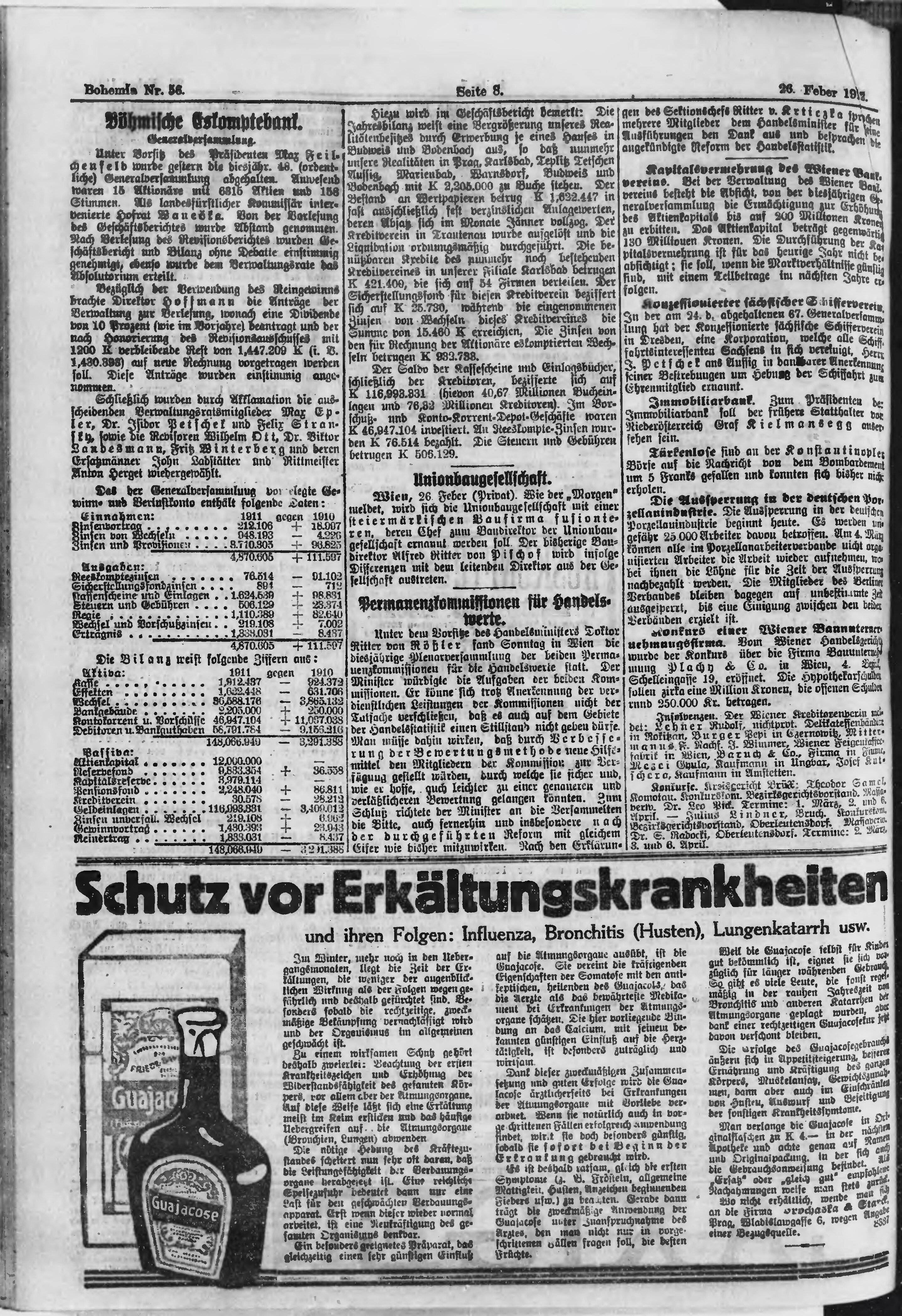 * Datum vydání výtisku: 26.2.1912 Číslo výtisku: 56 Poznámky k výtisku: polední vydání;