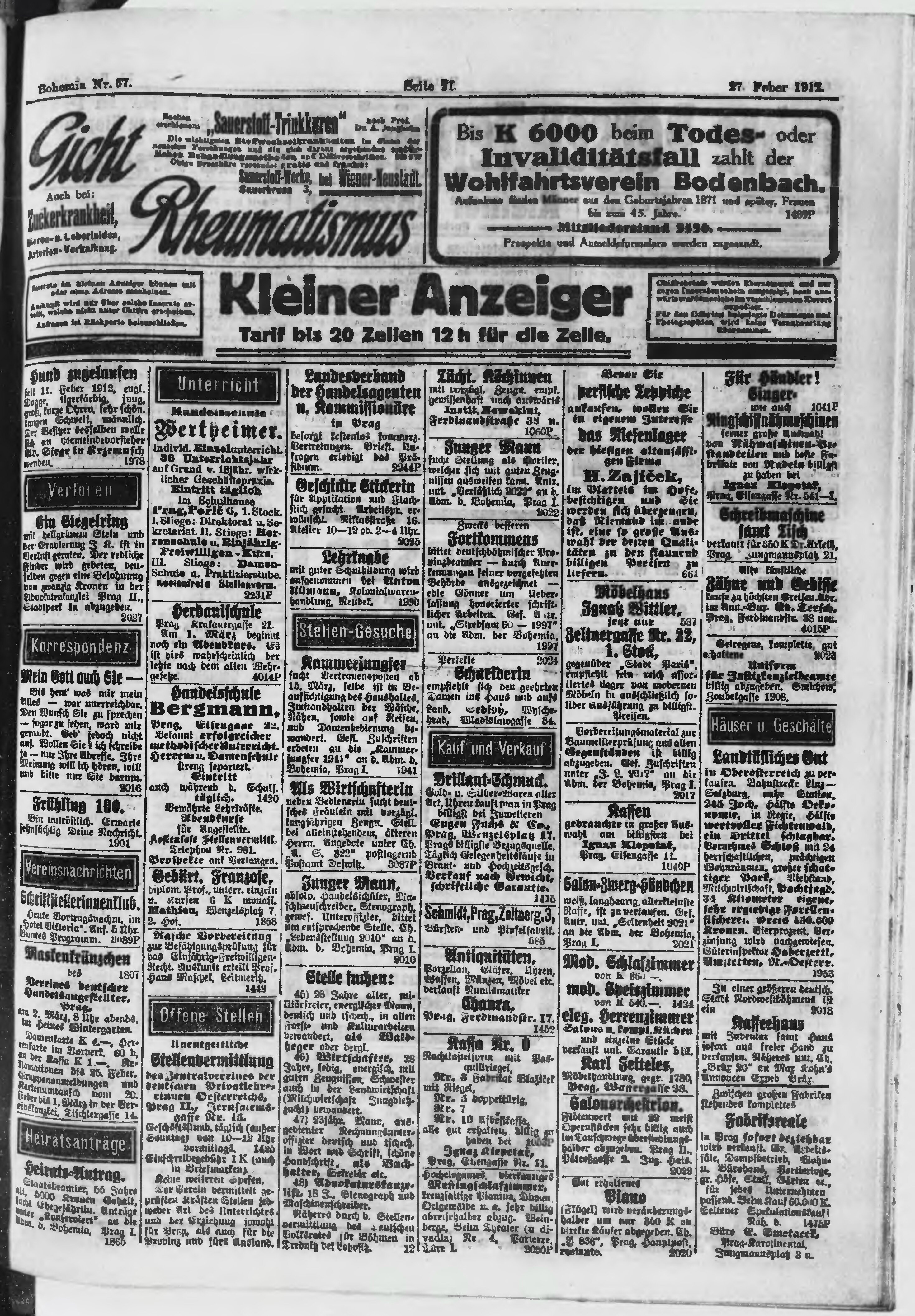 * Datum vydání výtisku: 27.2.1912 Číslo výtisku: 57 Poznámky k výtisku: ranní vydání;