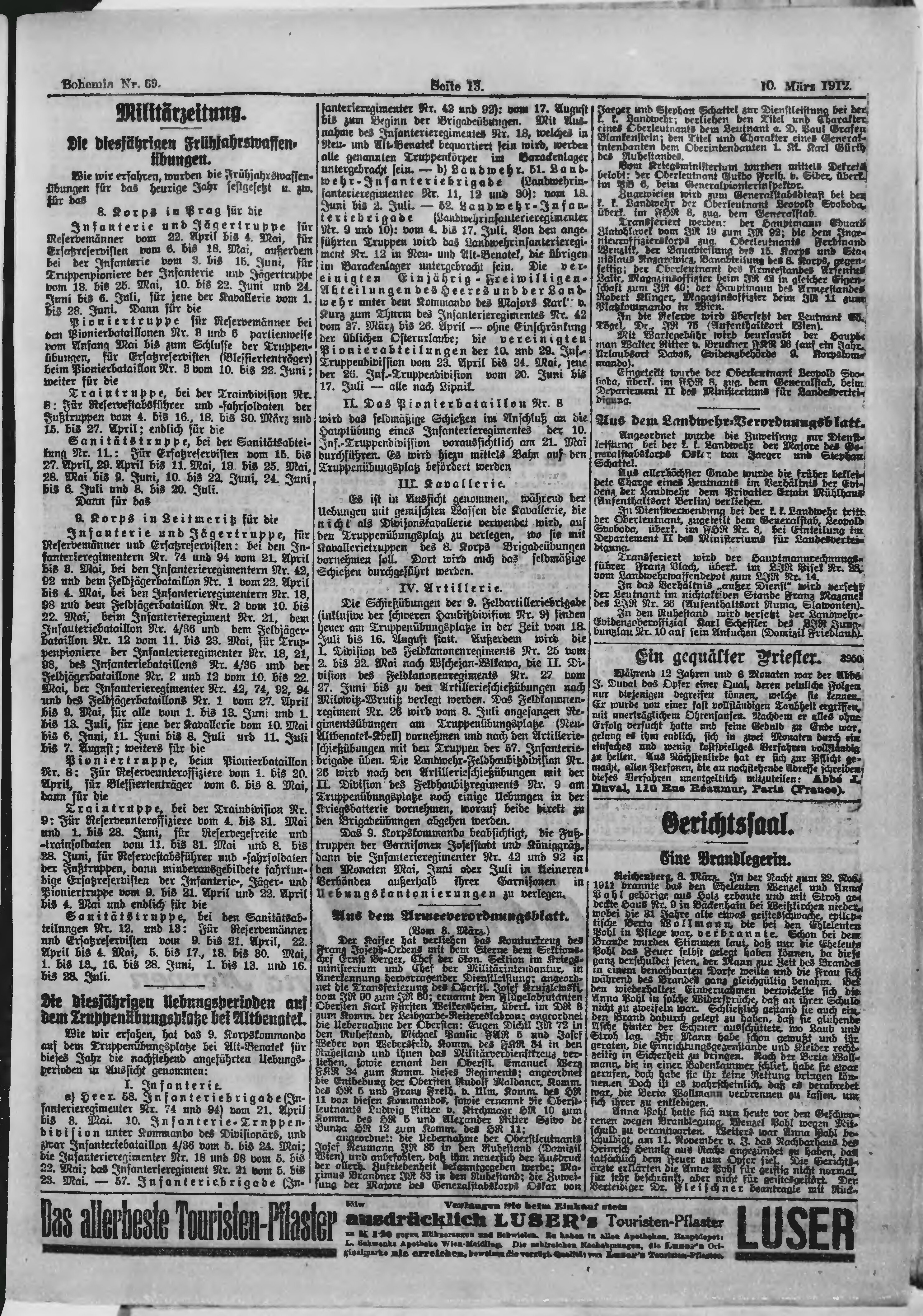 * Datum vydání výtisku: 10.3.1912 Číslo výtisku: 69 Poznámky k výtisku: ranní vydání;
