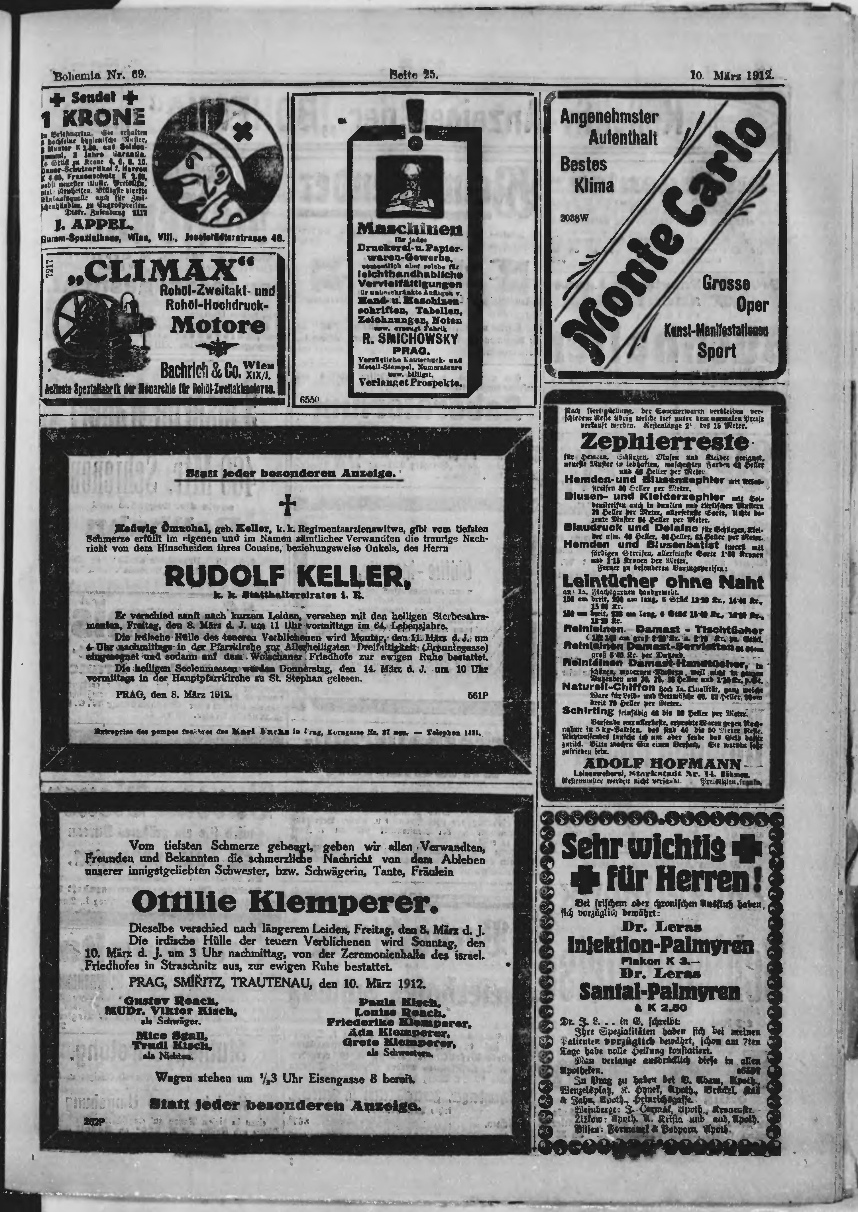 * Datum vydání výtisku: 10.3.1912 Číslo výtisku: 69 Poznámky k výtisku: ranní vydání;