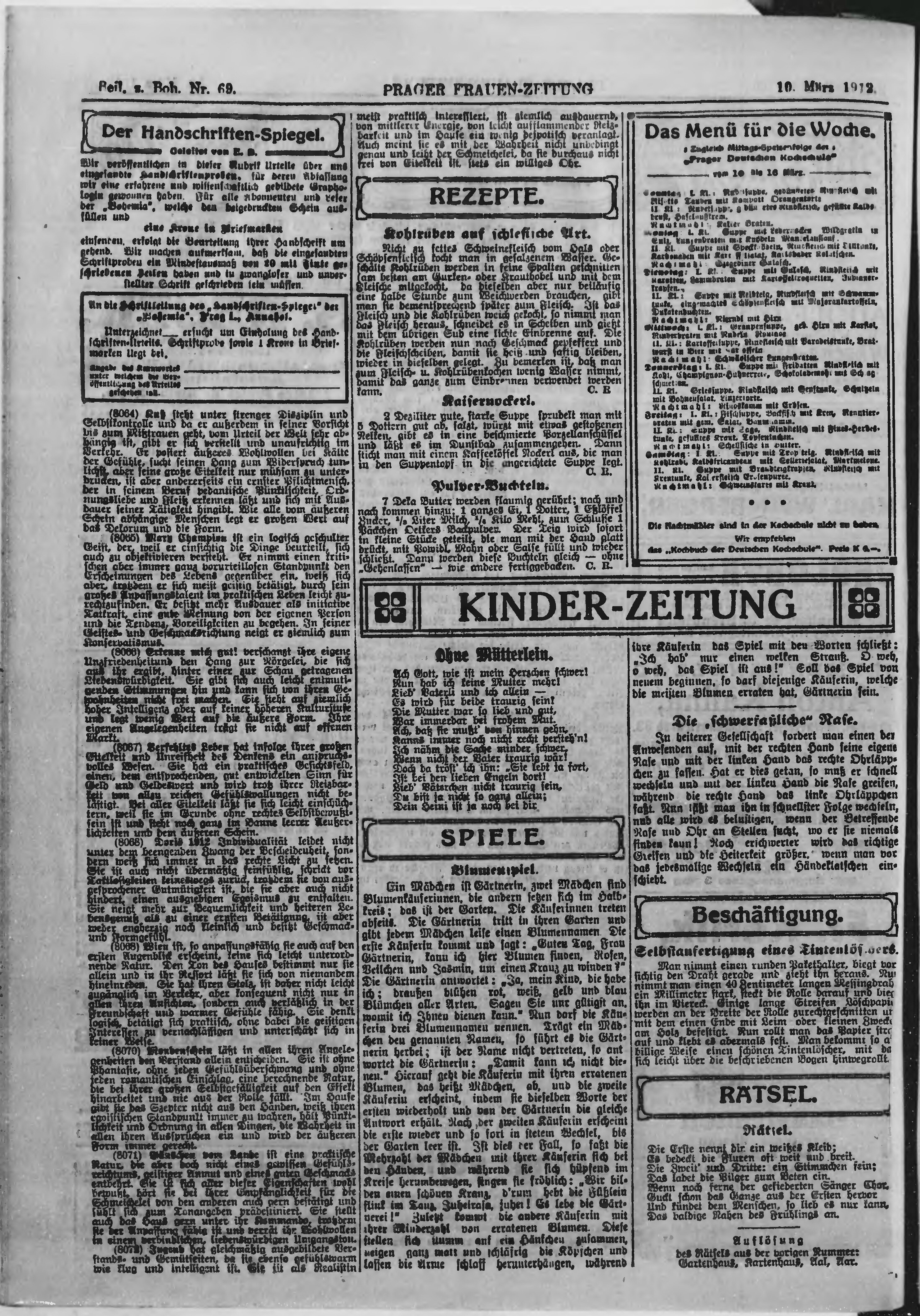 * Datum vydání výtisku: 10.3.1912 Číslo výtisku: 69 Poznámky k výtisku: ranní vydání;